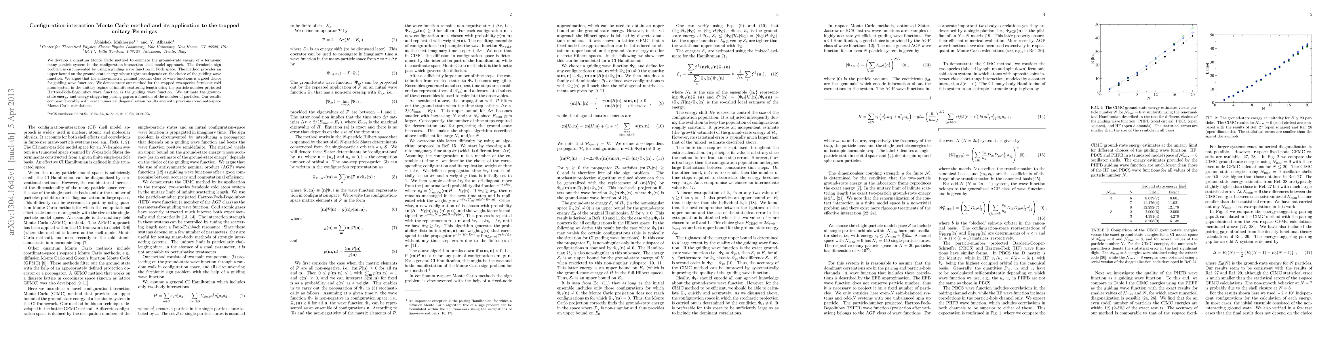 We develop a quantum Monte Carlo method to estimate the ground-state energy of a fermionic many-particle system in the configuration-interaction shell model approach. The fermionic sign problem is circumvented by using a guiding wave function in Fock space. The method provides an upper bound on the ground-state energy whose tightness depends on the choice of the guiding wave function. We argue that the antisymmetric geminal product class of wave functions is a good choice for guiding wave functions. We demonstrate our method for the trapped two-species fermionic cold atom system in the unitary regime of infinite scattering length using the particle-number projected Hartree-Fock-Bogoliubov wave function as the guiding wave function. We estimate the ground-state energy and energy-staggering pairing gap as a function of the number of particles. Our results compare favorably with exact numerical diagonalization results and with previous coordinate-space Monte Carlo calculations.