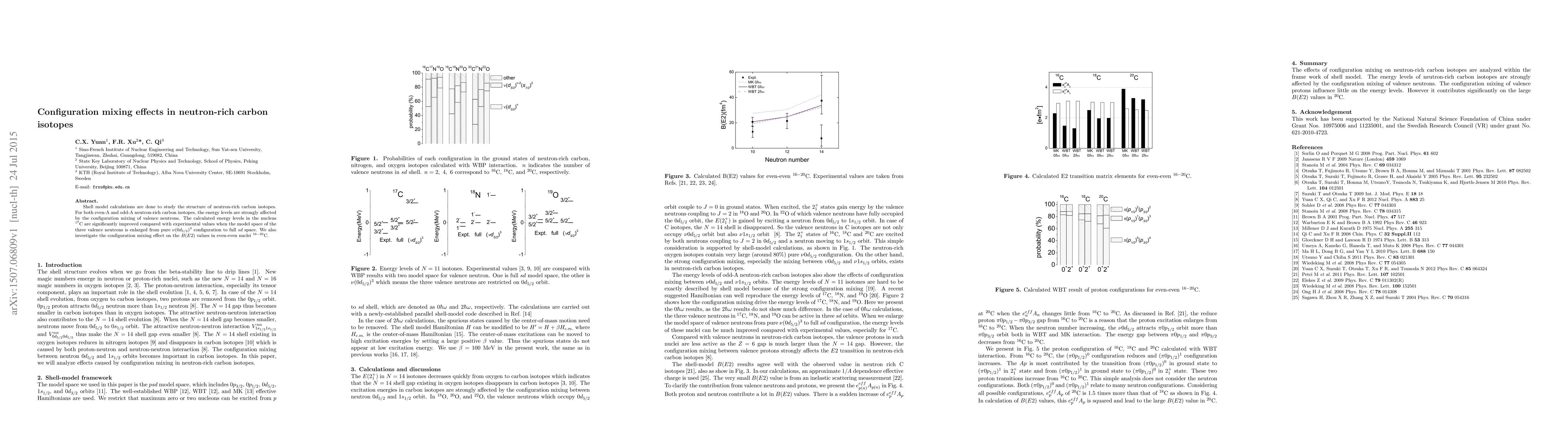 This study investigates the configuration mixing effects in neutron-rich carbon isotopes using shell model calculations, showing significant improvements in energy levels for $^{17}$C when considering full $sd$ space. It also examines the impact of configuration mixing on $B(E2)$ values in even-even carbon isotopes.