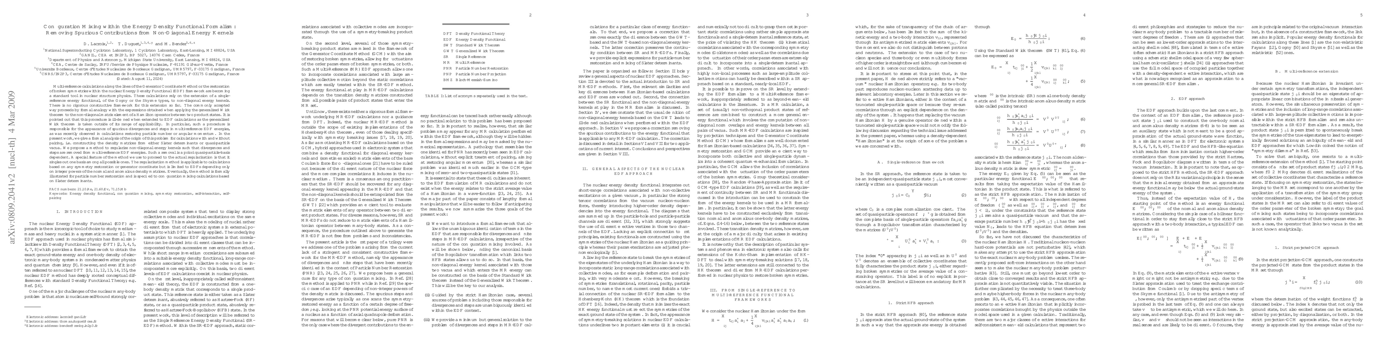 This paper addresses the issue of spurious contributions in multi-reference nuclear structure calculations using the Energy Density Functional (EDF) framework, particularly when extending single-reference functionals to non-diagonal kernels. It proposes a correction method to remove divergences and steps in EDF energies, applicable to symmetry restoration and configuration mixing calculations.