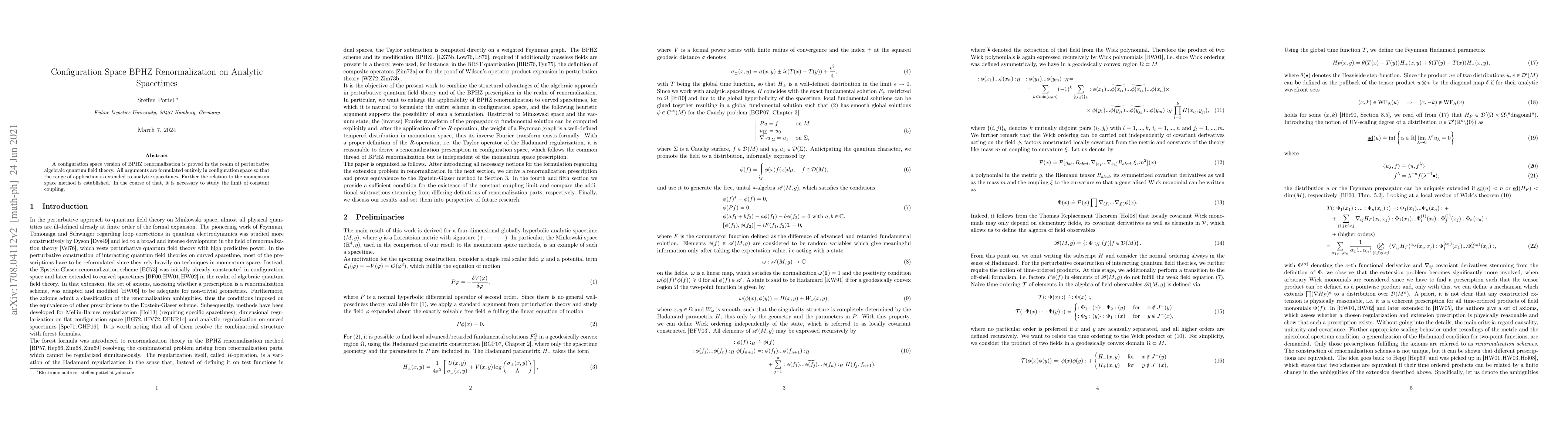 Summary: This paper presents a configuration space implementation of BPHZ renormalization for perturbative algebraic quantum field theory, extending its applicability to analytic spacetimes, and establishes its connection to the momentum space method while investigating the limit of constant coupling.