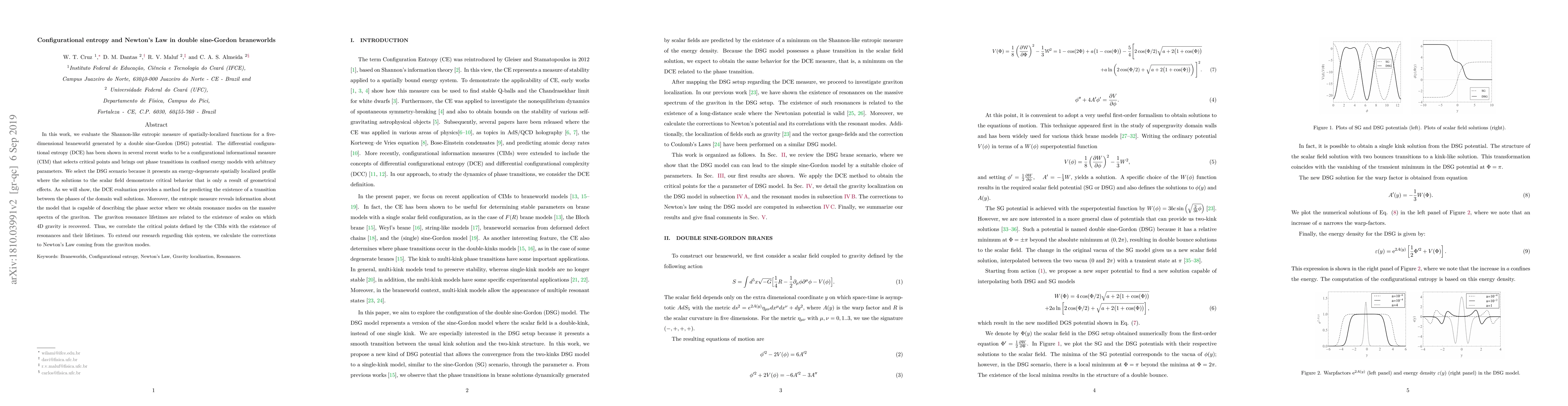 This paper explores the configurational entropy in a five-dimensional braneworld model defined by a double sine-Gordon potential, revealing critical behavior and phase transitions through differential configurational entropy. It also investigates the corrections to Newton's Law arising from graviton resonance modes, linking these to the recovery of 4D gravity.