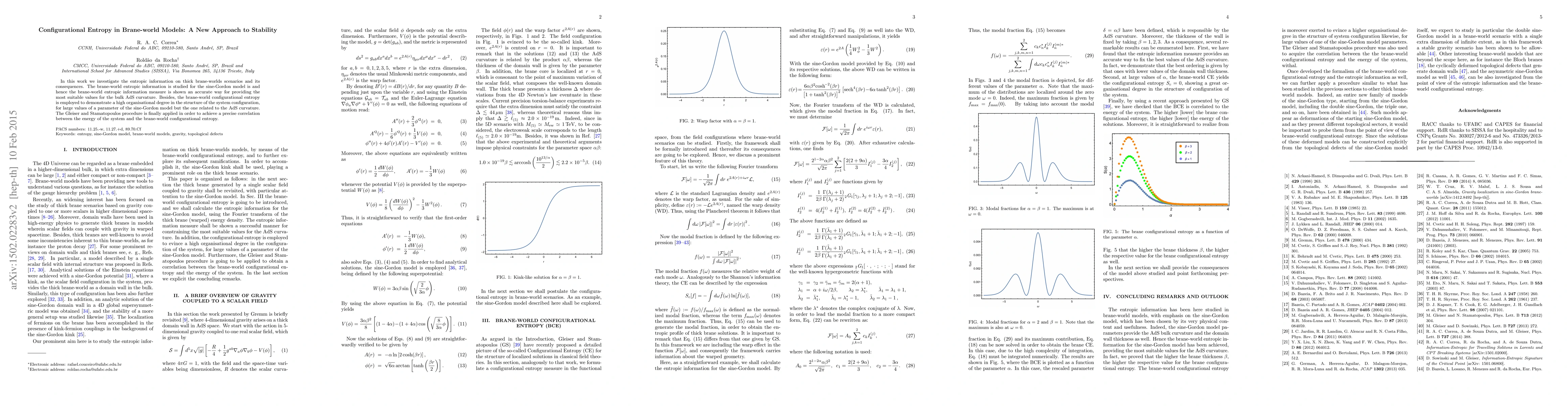 This paper explores the entropic information on thick brane-worlds using the sine-Gordon model, demonstrating that brane-world entropic information measures provide optimal values for the bulk AdS curvature. It also shows a high organizational degree in the system's configurational entropy for large values of the sine-Gordon model parameter, and applies the Gleiser and Stamatopoulos procedure to correlate system energy with brane-world configurational entropy.