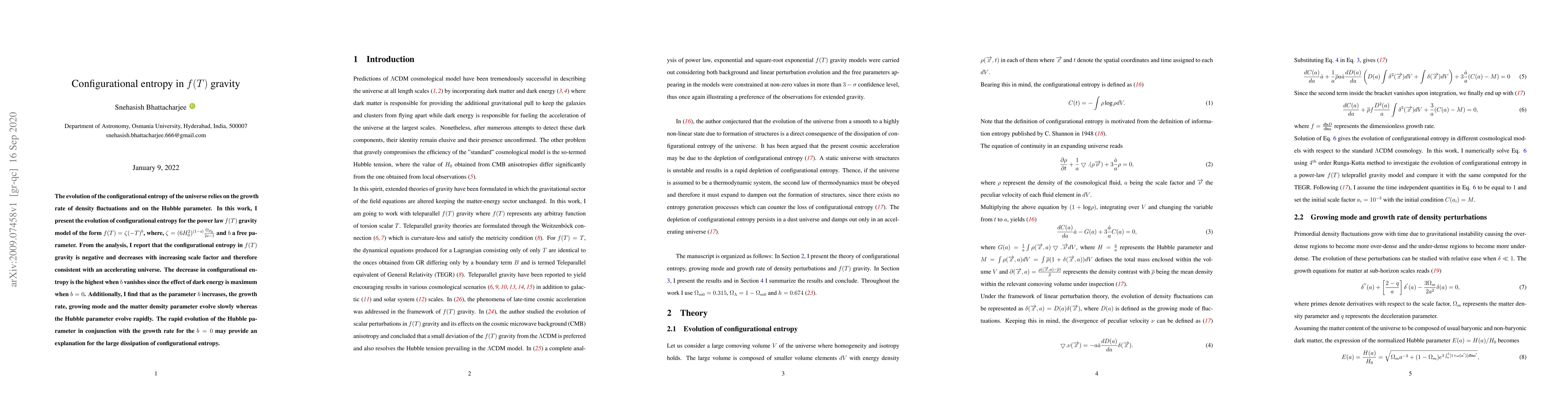 The configurational entropy in $f(T)$ gravity is negative and decreases with increasing scale factor, suggesting an accelerating universe. It also reveals that the Hubble parameter evolves rapidly when $b=0$, potentially explaining large dissipation of configurational entropy.
