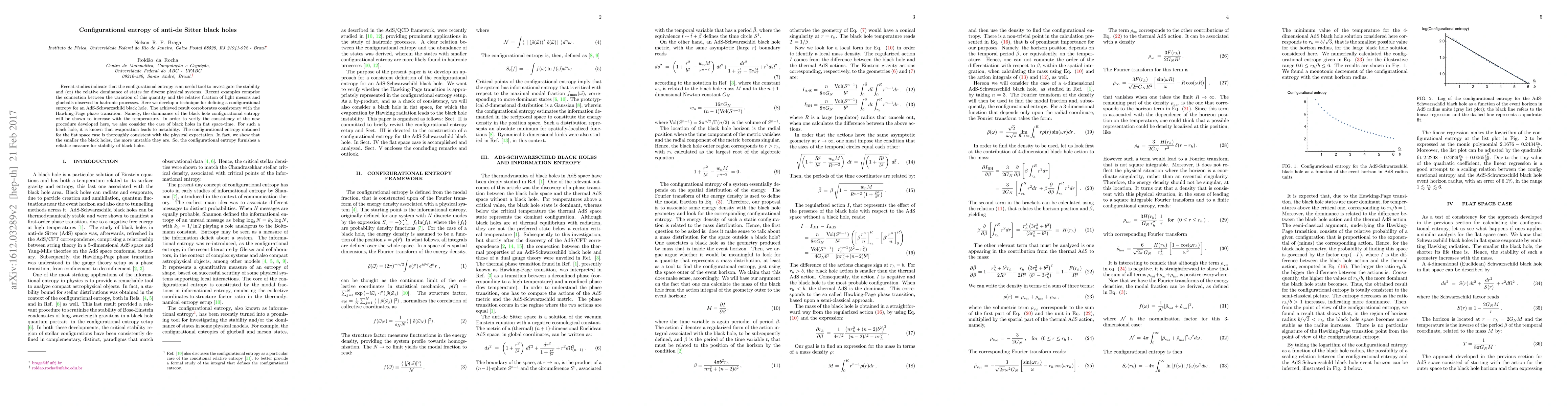 This paper develops a method to define configurational entropy for anti-de Sitter (AdS) Schwarzschild black holes and verifies its consistency with the Hawking-Page phase transition, showing that smaller black holes are more unstable, thus providing a reliable stability measure.