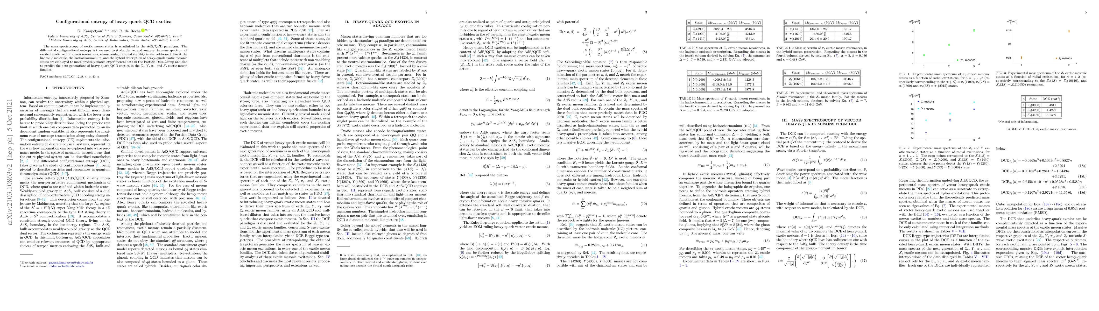 The mass spectroscopy of exotic meson states is scrutinized in the AdS/QCD paradigm. The differential configurational entropy is then used to study, derive, and analyze the mass spectrum of excited exotic vector meson resonances, whose configurational stability is also addressed. For it the hadronic molecule, the hadrocharmonium, and the hybrid description of heavy-quark exotic mesonic states are employed to more precisely match experimental data in the Particle Data Group and also to predict the next generations of heavy-quark QCD exotica in the $Z_c$, $Y$, $\pi_1$, and $Z_b$ exotic meson families.