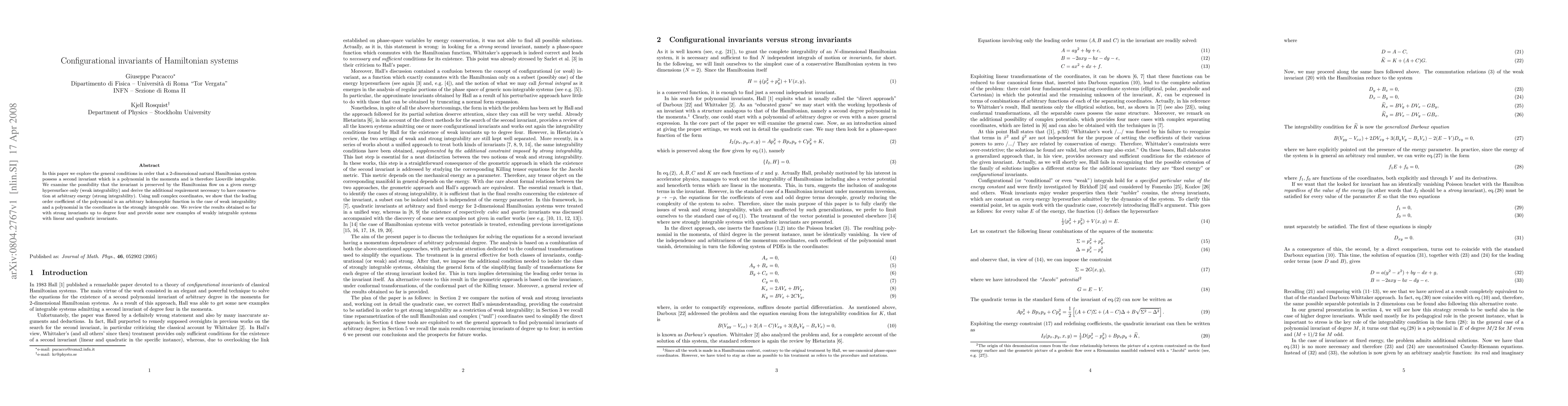 In this paper we explore the general conditions in order that a 2-dimensional natural Hamiltonian system possess a second invariant which is a polynomial in the momenta and is therefore Liouville integrable. We examine the possibility that the invariant is preserved by the Hamiltonian flow on a given energy hypersurface only (weak integrability) and derive the additional requirement necessary to have conservation at arbitrary energy (strong integrability). Using null complex coordinates, we show that the leading order coefficient of the polynomial is an arbitrary holomorphic function in the case of weak integrability and a polynomial in the coordinates in the strongly integrable one. We review the results obtained so far with strong invariants up to degree four and provide some new examples of weakly integrable systems with linear and quadratic invariants.