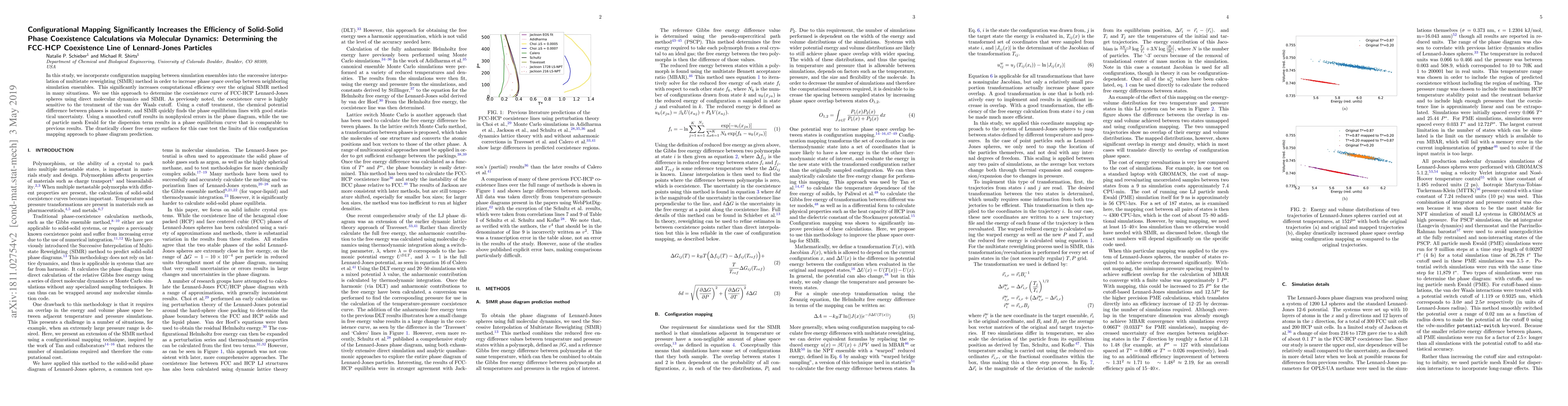 In this study, we incorporate configuration mapping between simulation ensembles into the successive interpolation of multistate reweighting (SIMR) method in order to increase phase space overlap between neighboring simulation ensembles. This significantly increases computational efficiency over the original SIMR method in many situations. We use this approach to determine the coexistence curve of face-centered cubic-hexagonal close-packed Lennard-Jones spheres using direct molecular dynamics and SIMR. As previously noted, the coexistence curve is highly sensitive to the treatment of the van der Waals cutoff. Using a cutoff treatment, the chemical potential difference between phases is moderate and SIMR quickly finds the phase equilibrium lines with good statistical uncertainty. Using a smoothed cutoff results in nonphysical errors in the phase diagram, while the use of particle mesh Ewald for the dispersion term results in a phase equilibrium curve that is comparable with previous results. The drastically closer free energy surfaces for this case test the limits of this configuration mapping approach to phase diagram prediction.