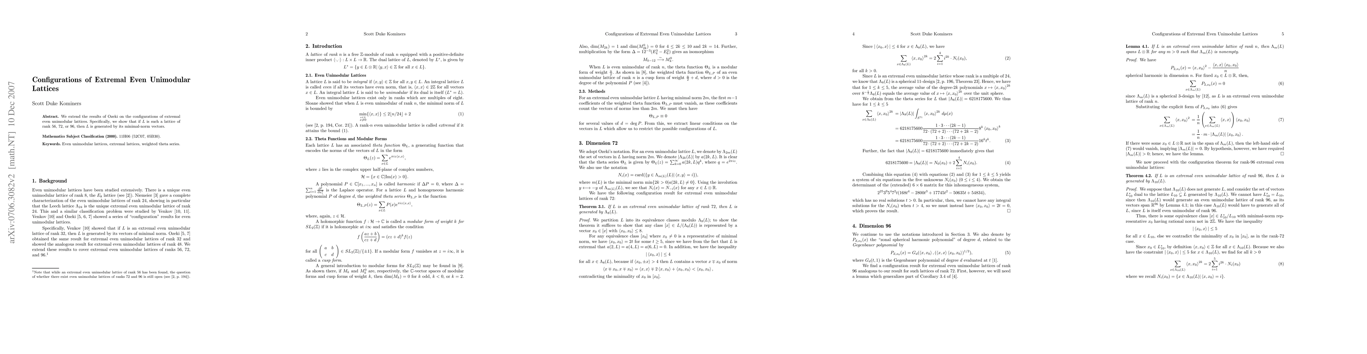 Summary: This paper extends Ozeki's findings on extremal even unimodular lattices, proving that lattices of ranks 56, 72, or 96 are generated by their minimal-norm vectors, thus confirming their configuration.