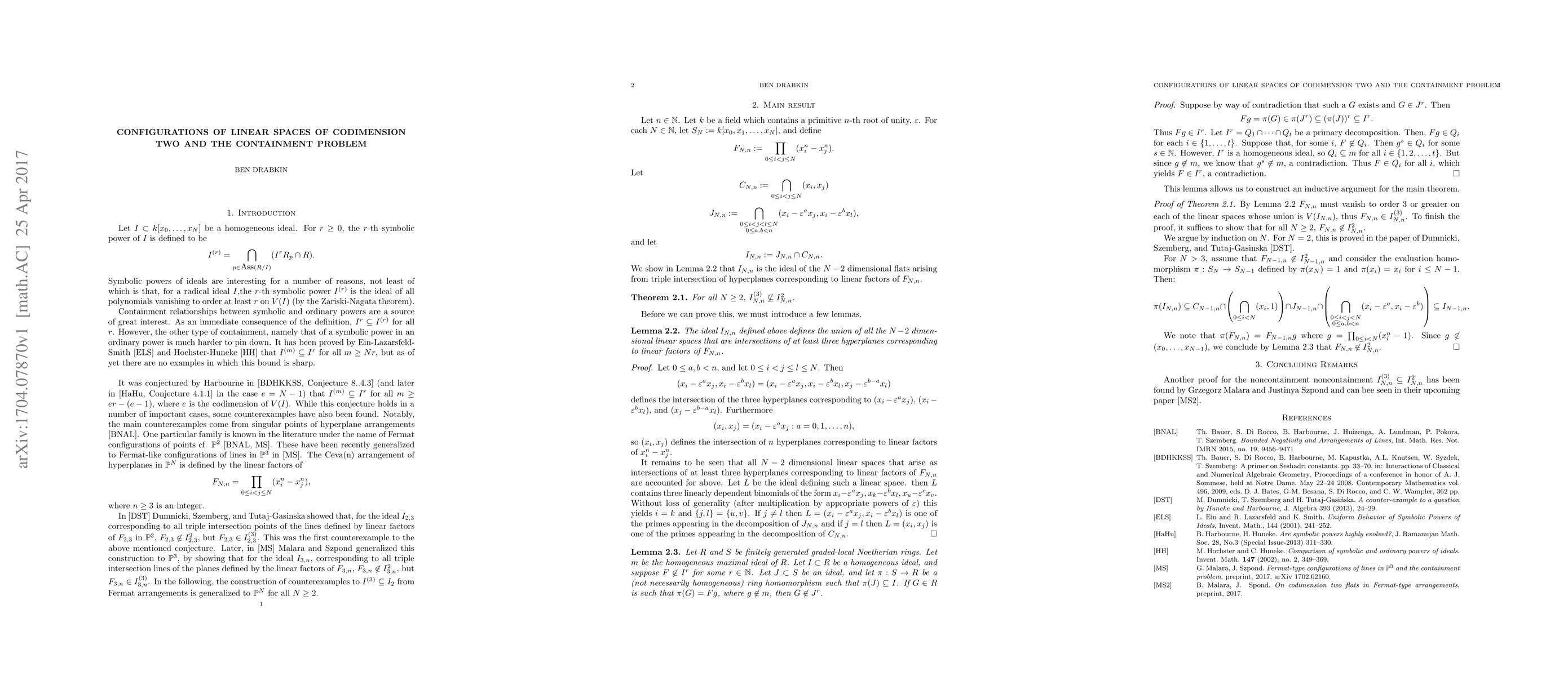 We show that the union of certain codimension two flats in Fermat hyperplane arrangements does not have the symbolic cube of the defining ideal contained in the square of the ideal.