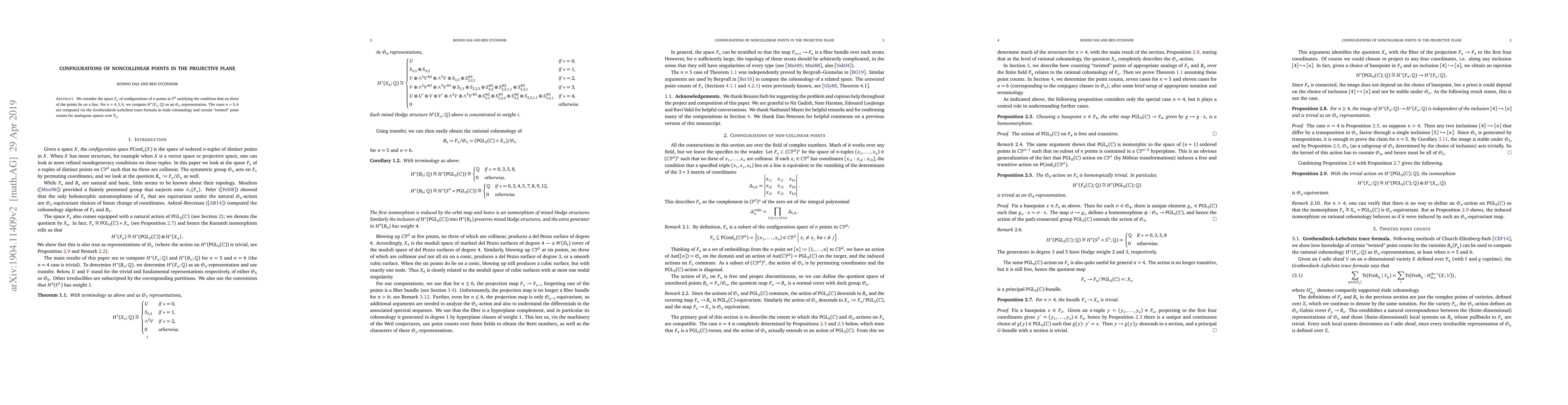 The paper introduces a method for computing cohomology using twisted point counts in étale cohomology, specifically for configuration spaces of noncollinear points in the projective plane.