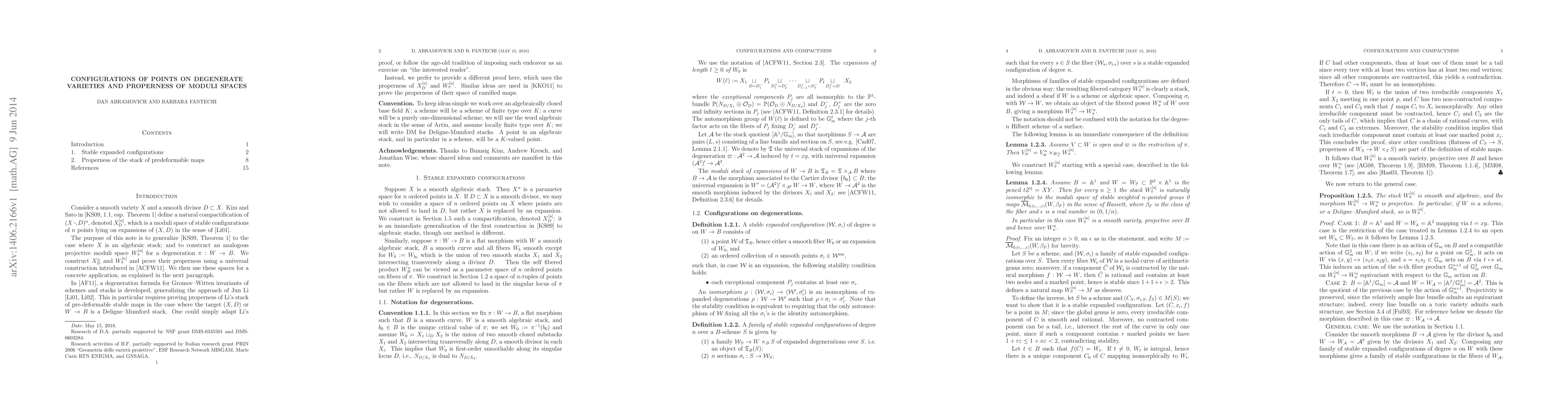 Consider a smooth variety $X$ and a smooth divisor $D\subset X$. Kim and Sato (arXiv:0806.3819) define a natural compactification of $(X\setminus D)^n$, denoted $X_D^{[n]}$, which is a moduli space of stable configurations of $n$ points lying on expansions of $(X,D)$ in the sense of Jun Li (arXiv:math/0009097, arXiv:math/0110113). The purpose of this note is to generalize Kim and Sato's construction to the case where $X$ is an algebraic stack; and to construct an analogous projective moduli space $W_\pi^{[n]}$ for a degeneration $\pi:W \to B$. We construct $X^n_D$ and $W_\pi^{[n]}$ and prove their properness using a universal construction introduced in our paper arXiv:1110.2976 with Cadman and Wise. We then use these spaces for a concrete application, as explained in the next paragraph. In arXiv:1103.5132, a degeneration formula for Gromov--Witten invariants of schemes and stacks is developed, generalizing the approach of Jun Li. This in particular requires proving properness of Li's stack of pre-deformable stable maps in the case where the target $(X,D)$ or $W\to B$ is a Deligne--Mumford stack. One could simply adapt Li's proof, or follow the age-old tradition of imposing such endeavor as an exercise on "the interested reader". Instead, we prefer to provide a different proof here, which uses the properness of $X_D^{[n]}$ and $W_\pi^{[n]}$. Similar ideas are used by Kim, Kresch and Oh (arXiv:1105.6143) to prove the properness of their space of ramified maps. This note is identical to the text available on our web pages since March 2013. It is posted now as it has become an essential ingredient in others' work.