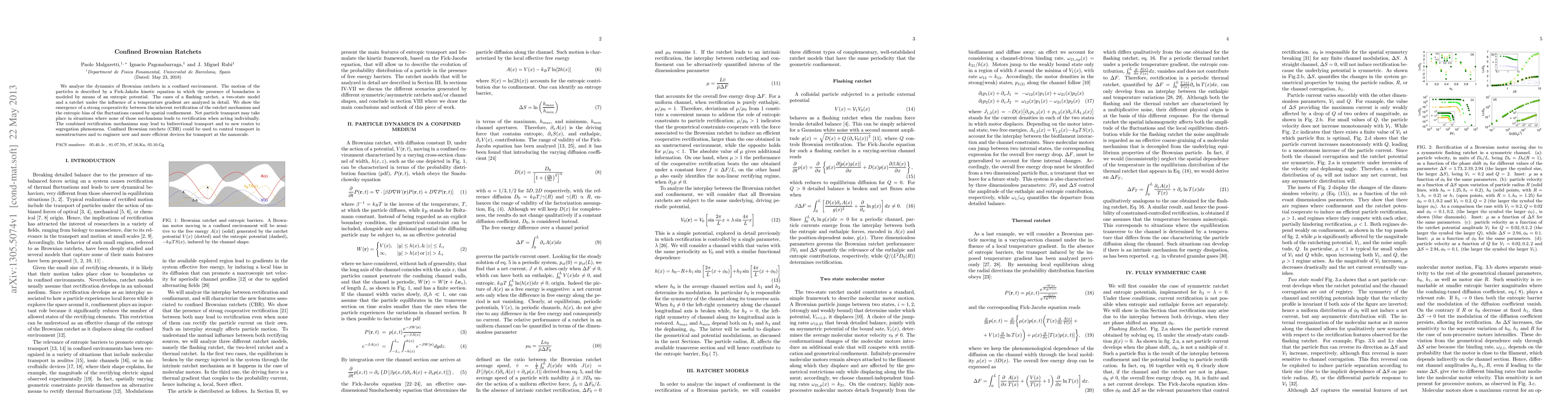A combination of computational simulations and analytical techniques were used to study the behavior of Brownian ratchets in confined geometries.
