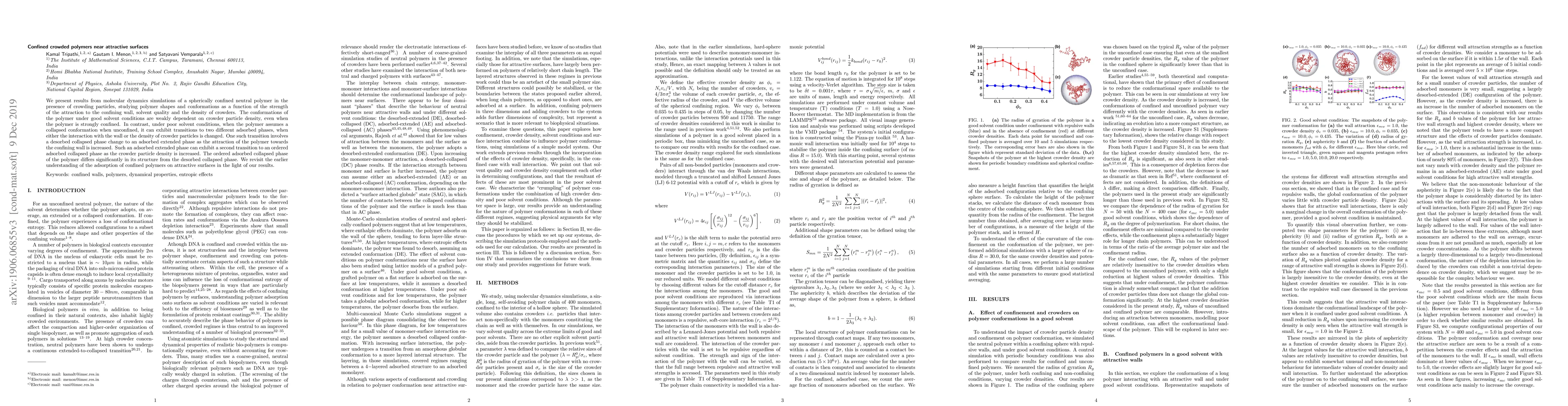 This study uses molecular dynamics simulations to explore how crowding agents affect the conformations of confined polymers near attractive surfaces. Under good solvent conditions, polymer shapes remain largely unaffected by crowder density, but in poor solvents, the polymer transitions from an extended to a globular state on the surface as crowder density increases, revealing a unique adsorption state.