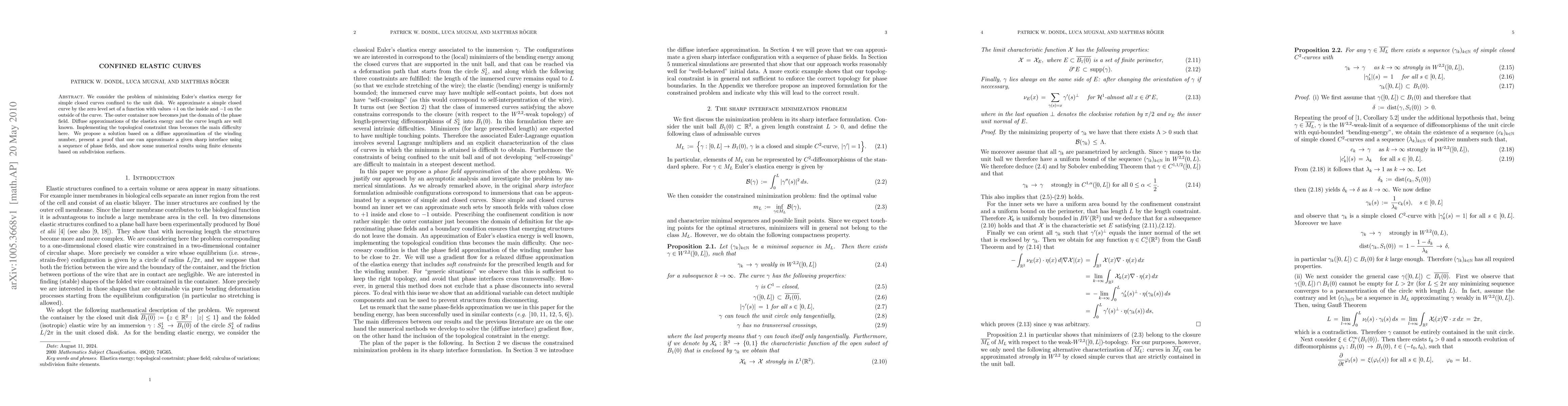 We consider the problem of minimizing Euler's elastica energy for simple closed curves confined to the unit disk. We approximate a simple closed curve by the zero level set of a function with values +1 on the inside and -1 on the outside of the curve. The outer container now becomes just the domain of the phase field. Diffuse approximations of the elastica energy and the curve length are well known. Implementing the topological constraint thus becomes the main difficulty here. We propose a solution based on a diffuse approximation of the winding number, present a proof that one can approximate a given sharp interface using a sequence of phase fields, and show some numerical results using finite elements based on subdivision surfaces.