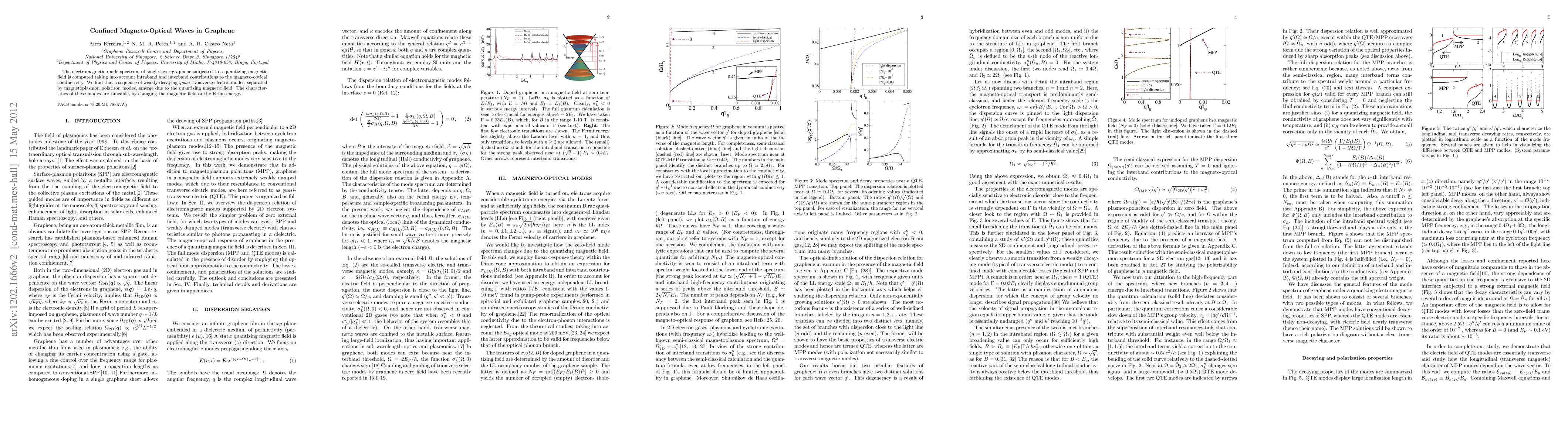 The study computes the electromagnetic mode spectrum in graphene under a magnetic field, revealing weakly decaying quasi-transverse-electric modes separated by magnetoplasmon polariton modes, with tunable characteristics via magnetic field or Fermi energy adjustments.