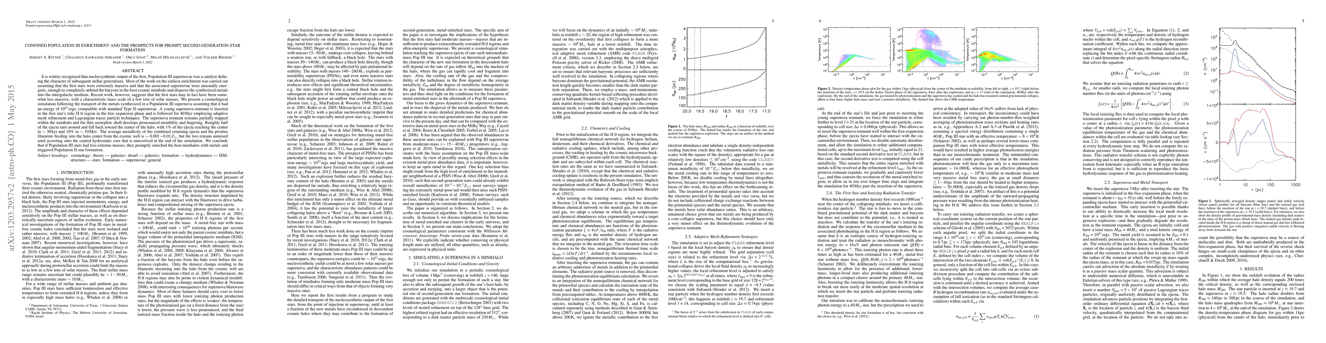 This paper investigates the nucleosynthetic output of less massive first-generation stars and their impact on subsequent star formation. The simulation shows that supernova remnants remain partially trapped within the host minihalo, leading to significant metal enrichment and triggering second-generation star formation within the same minihalo.
