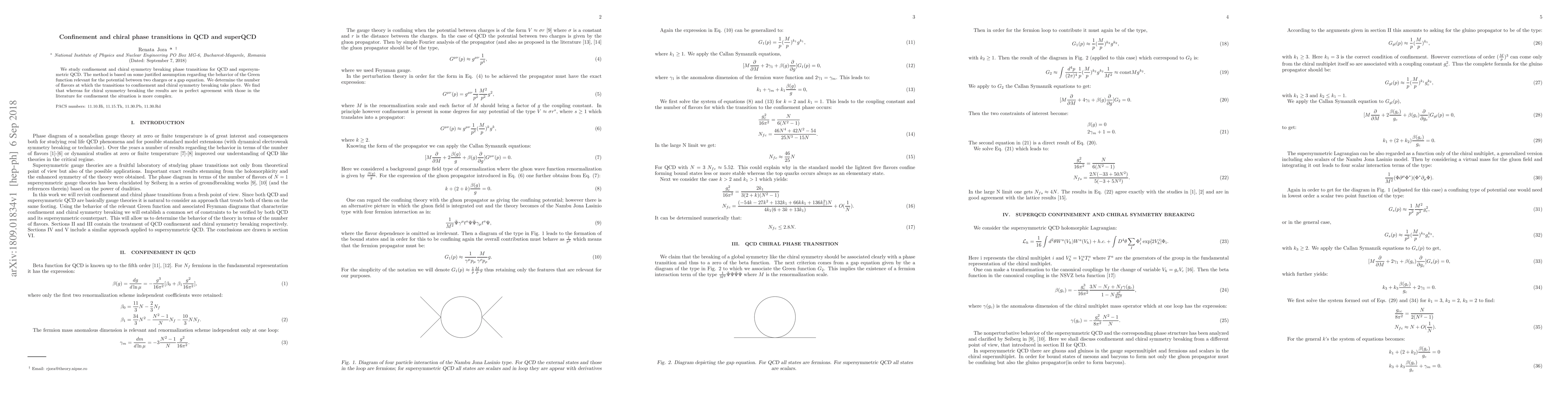 This paper investigates the phase transitions related to confinement and chiral symmetry breaking in both QCD and supersymmetric QCD, using assumptions about the behavior of the relevant Green function. It finds that while the results for chiral symmetry breaking align with existing literature, the situation for confinement is more intricate.