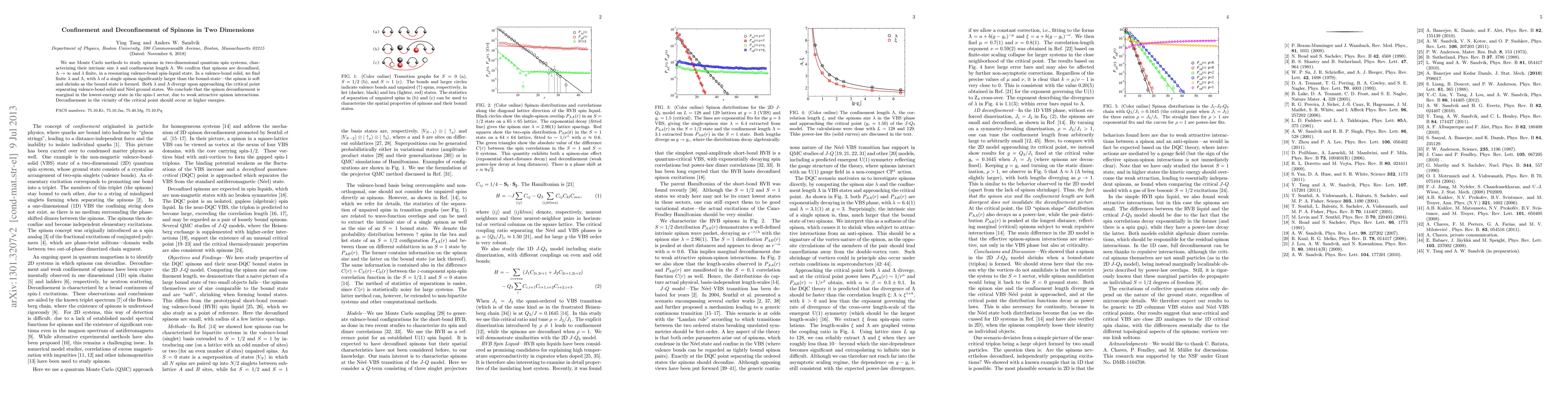 This study uses Monte Carlo methods to investigate spinons in two-dimensional quantum spin systems, showing that spinons are deconfined in a spin-liquid state while they are confined in a valence-bond solid. The research highlights that spinon deconfinement is marginal in the lowest-energy state, with confinement becoming significant near the critical point between valence-bond solid and N\'eel states.