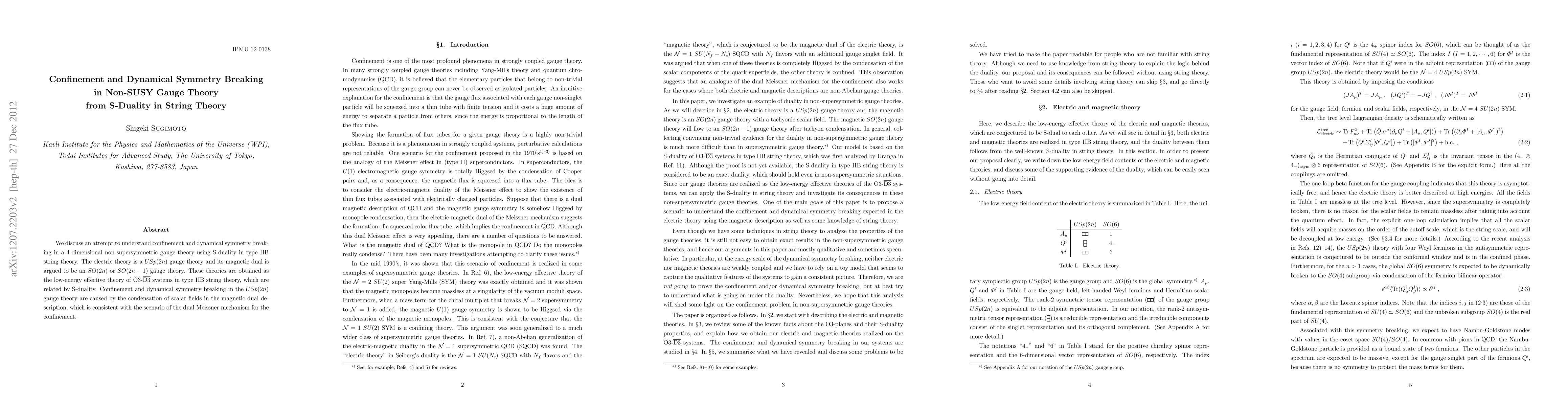 This research investigates confinement and dynamical symmetry breaking in a 4-dimensional non-SUSY USp(2n) gauge theory via S-duality in type IIB string theory, revealing these phenomena through the condensation of scalar fields in its magnetic dual SO(2n) or SO(2n-1) gauge theory. The study connects these dual gauge theories to low-energy O3-D3bar systems in type IIB string theory, highlighting the dual Meissner mechanism for confinement.