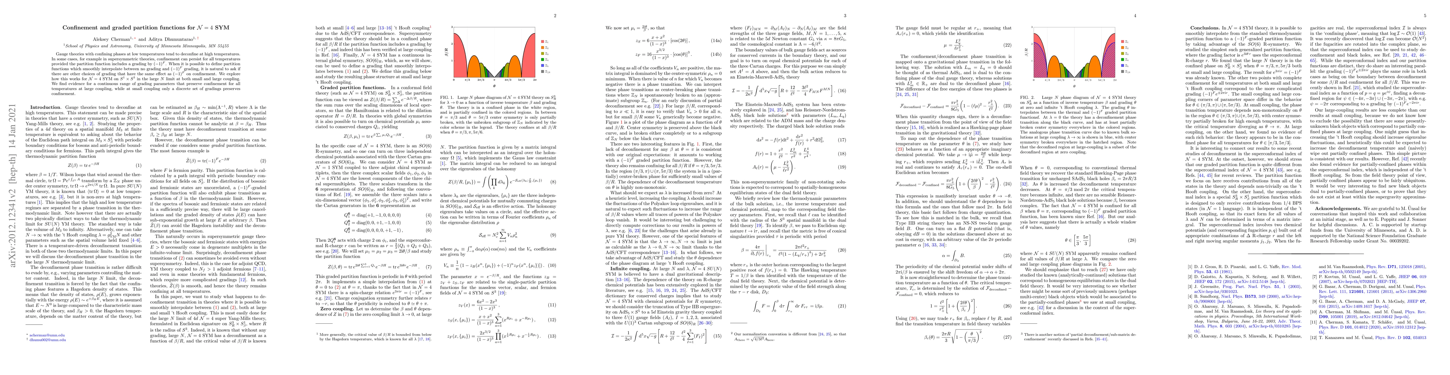 Gauge theories with confining phases at low temperatures tend to deconfine at high temperatures. In some cases, for example in supersymmetric theories, confinement can persist for all temperatures provided the partition function includes a grading by $(-1)^F$. When it is possible to define partition functions which smoothly interpolate between no grading and $(-1)^F$ grading, it is natural to ask if there are other choices of grading that have the same effect as $(-1)^F$ on confinement. We explore how this works for $\mathcal{N}=4$ SYM on $S^1\times S^3$ in the large $N$ limit at both small and large coupling. We find evidence for a continuous range of grading parameters that preserve confinement for all temperatures at large coupling, while at small coupling only a discrete set of gradings preserves confinement.
