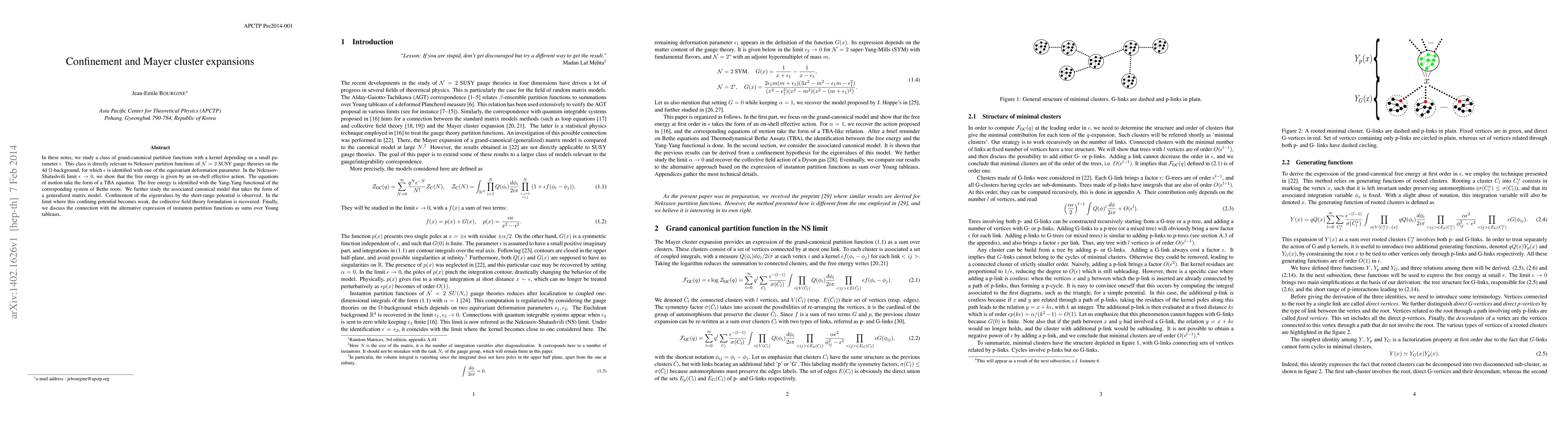 In these notes, we study a class of grand-canonical partition functions with a kernel depending on a small parameter $\epsilon$. This class is directly relevant to Nekrasov partition functions of $\mathcal{N}=2$ SUSY gauge theories on the 4d $\Omega$-background, for which $\epsilon$ is identified with one of the equivariant deformation parameter. In the Nekrasov-Shatashvili limit $\epsilon\to0$, we show that the free energy is given by an on-shell effective action. The equations of motion take the form of a TBA equation. The free energy is identified with the Yang-Yang functional of the corresponding system of Bethe roots. We further study the associated canonical model that takes the form of a generalized matrix model. Confinement of the eigenvalues by the short-range potential is observed. In the limit where this confining potential becomes weak, the collective field theory formulation is recovered. Finally, we discuss the connection with the alternative expression of instanton partition functions as sums over Young tableaux.