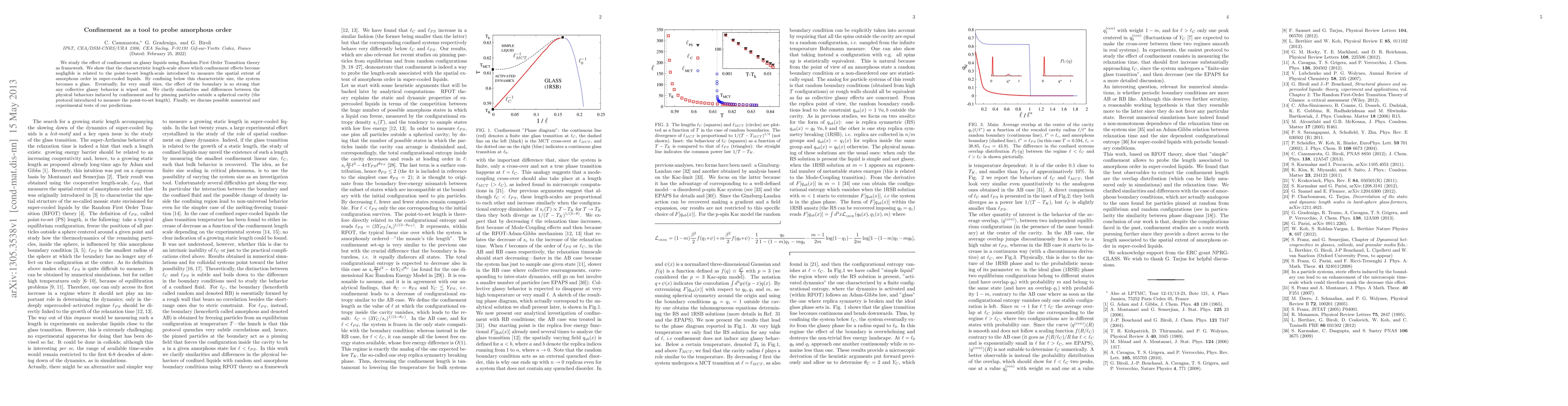 This research uses Random First Order Transition theory to explore how confinement impacts glassy liquids, finding a specific size threshold where confinement effects diminish. Below this, collective glassy behavior vanishes, and it distinguishes confinement effects from those of pinning particles, suggesting tests for numerical and experimental verification.