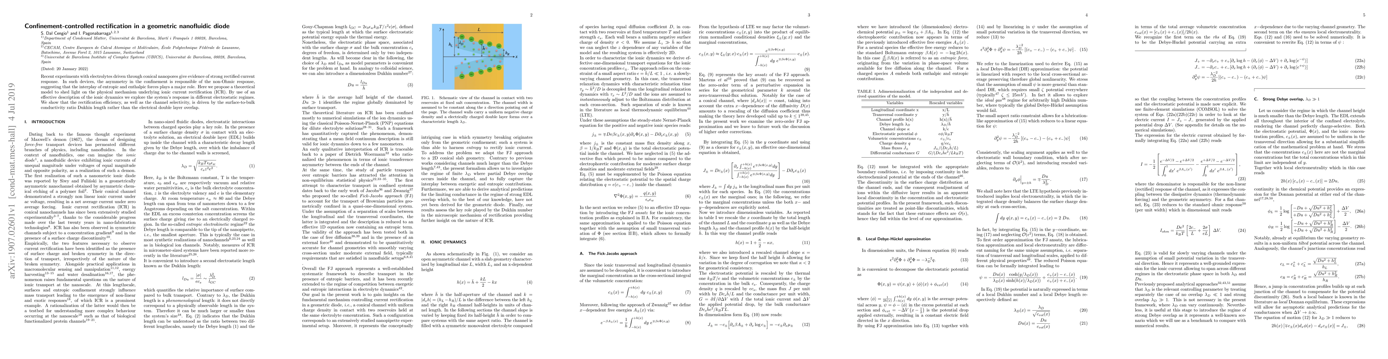 A theoretical model proposes that ionic current rectification in geometric nanofluidic diodes is driven by the surface-to-bulk conductivity ratio, not electrical double layer overlap.