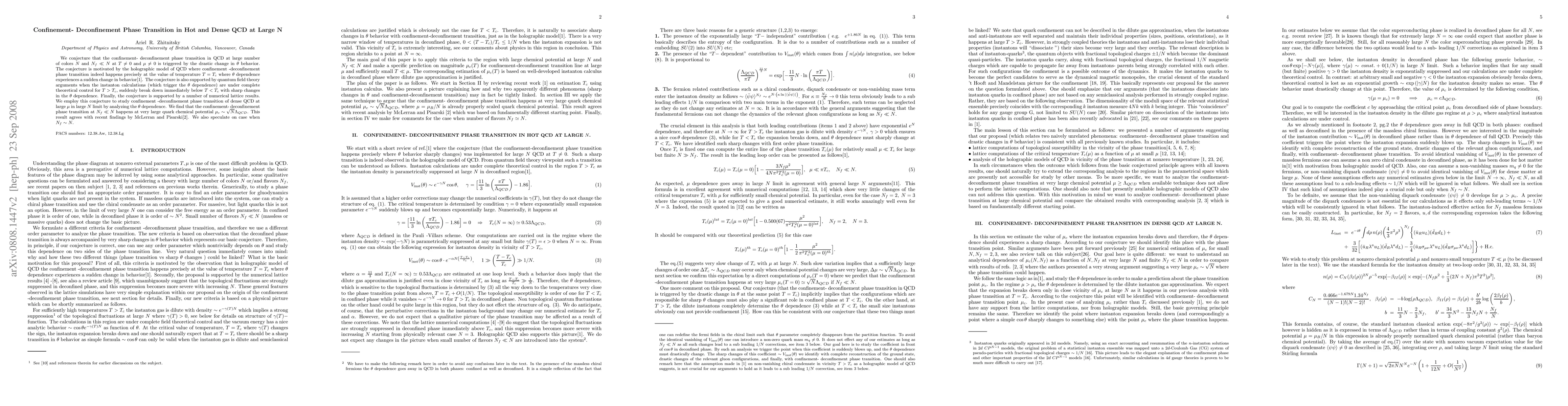 This paper proposes that the confinement-deconfinement phase transition in hot and dense QCD at large N is driven by a drastic change in the behavior of the \theta term. This conjecture is supported by holographic models, quantum field theory, and lattice results, and it predicts the transition occurs at a large quark chemical potential proportional to \sqrt{N}\Lambda_{QCD}.