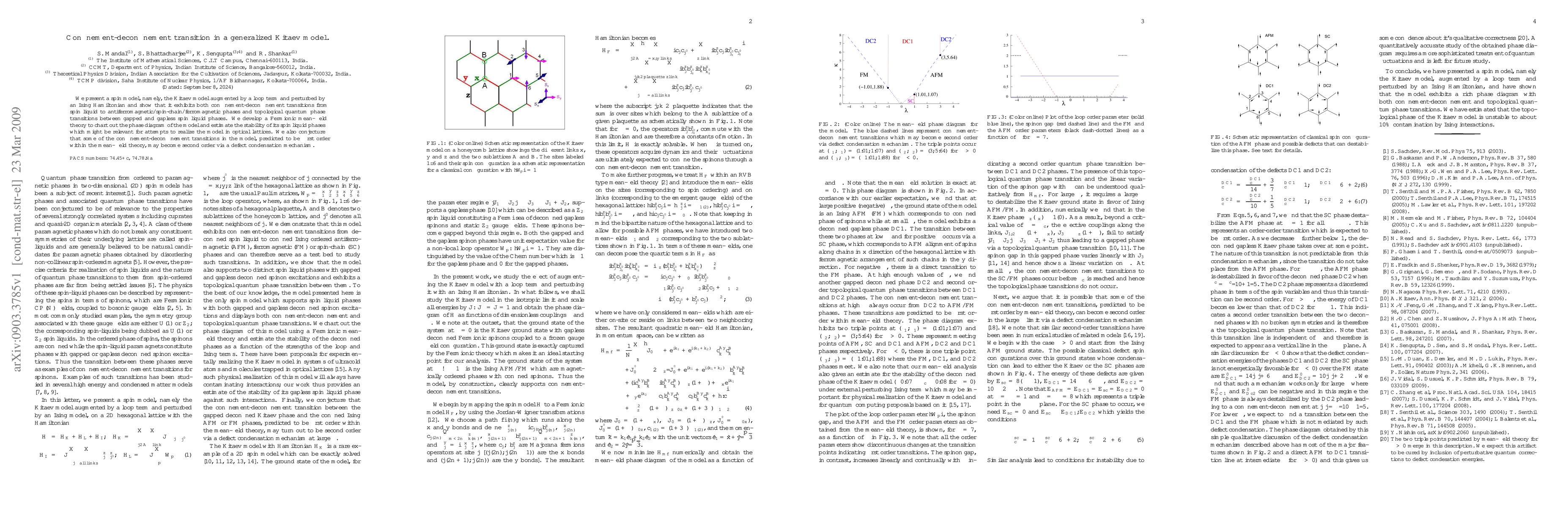 This paper explores a generalized Kitaev spin model with added loop and Ising terms, demonstrating confinement-deconfinement transitions and topological quantum phase transitions. The authors use fermionic mean-field theory to map out the phase diagram and suggest that some predicted first-order transitions may become second-order through defect condensation.