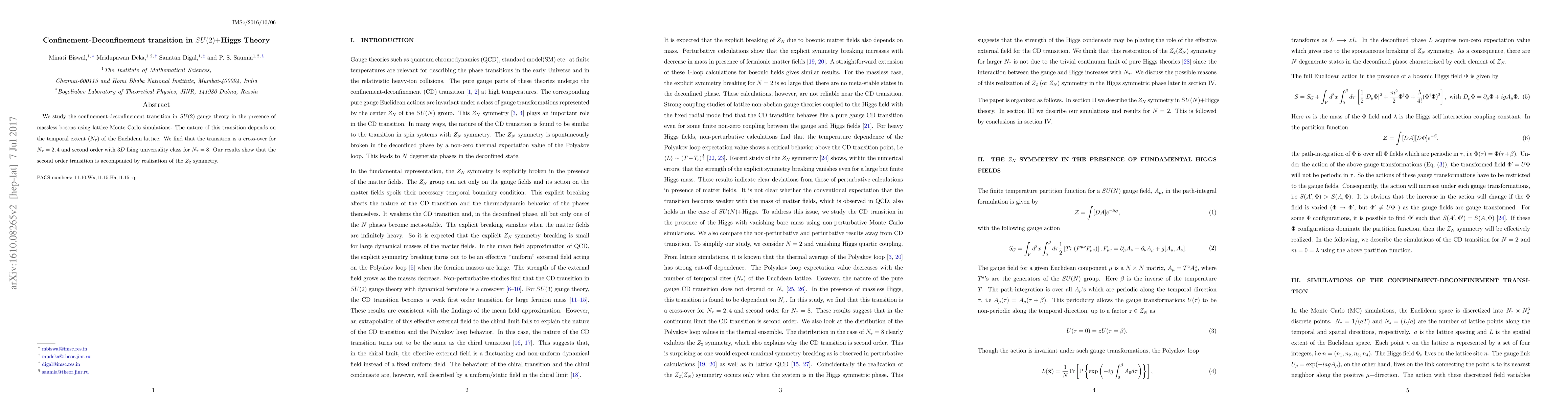 Researchers studied the confinement-deconfinement transition in a specific type of physics theory using computer simulations. They found that the transition depends on the size of the lattice and can be either a crossover or second-order transition with certain characteristics.