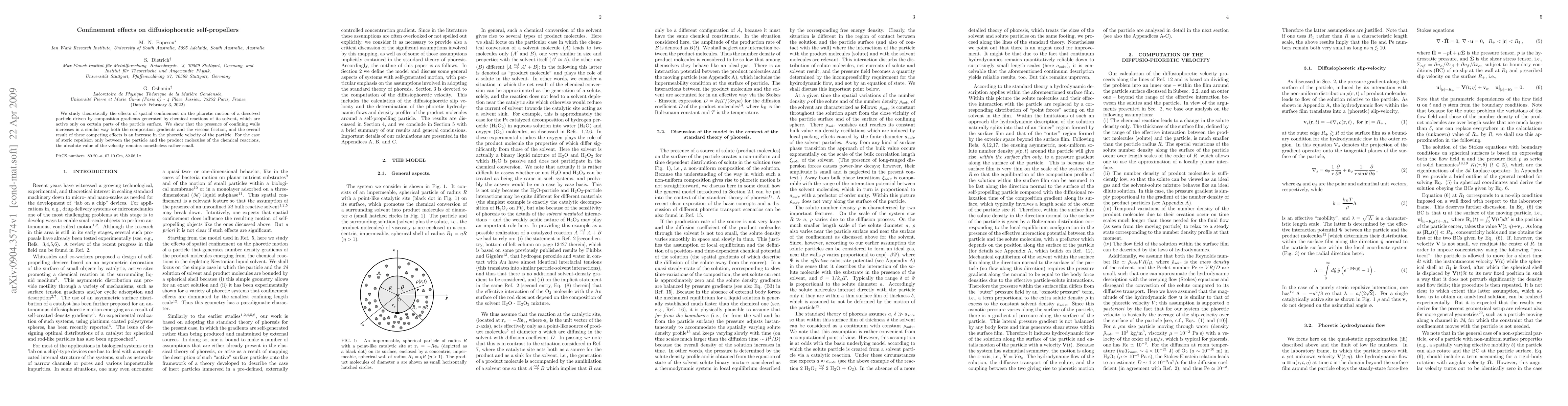We study theoretically the effects of spatial confinement on the phoretic motion of a dissolved particle driven by composition gradients generated by chemical reactions of its solvent, which are active only on certain parts of the particle surface. We show that the presence of confining walls increases in a similar way both the composition gradients and the viscous friction, and the overall result of these competing effects is an increase in the phoretic velocity of the particle. For the case of steric repulsion only between the particle and the product molecules of the chemical reactions, the absolute value of the velocity remains nonetheless rather small.