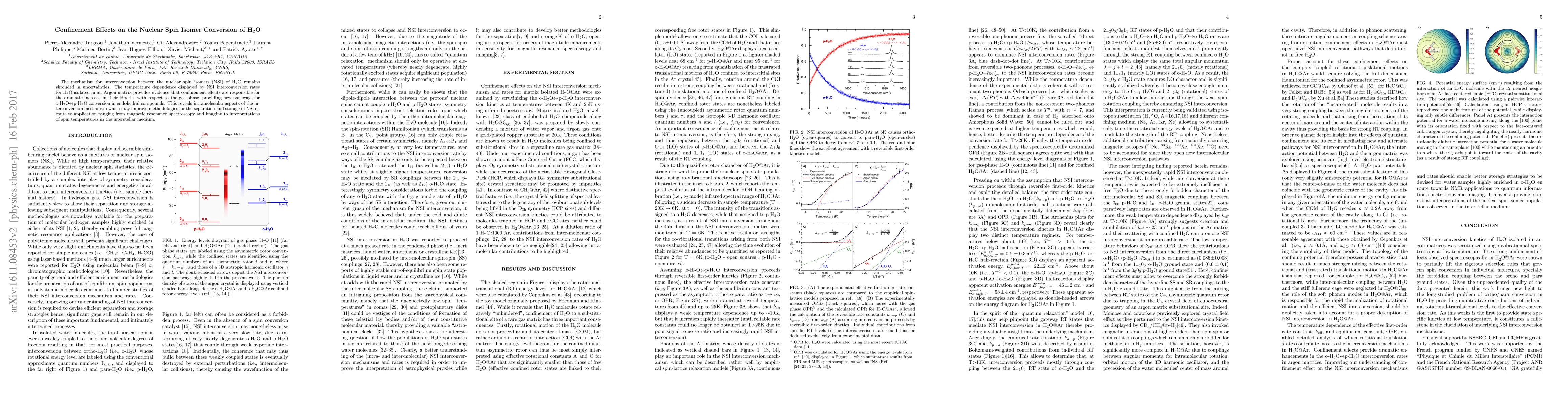 The mechanism for interconversion between the nuclear spin isomers (NSI) of H$_2$O remains shrouded in uncertainties. The temperature dependence displayed by NSI interconversion rates for H$_2$O isolated in an Argon matrix provides evidence that confinement effects are responsible for the dramatic increase in their kinetics with respect to the gas phase, providing new pathways for o-H$_2$O $\leftrightarrow$ p-H$_2$O conversion in endohedral compounds. This reveals intramolecular aspects of the interconversion mechanism which may improve methodologies for the separation and storage of NSI en route to applications in nuclear magnetic resonance spectroscopy and imaging. It may also improve astronomers' ability to use their relative abundance in the interstellar medium as proxies, thereby providing a valuable "astronomical clock".
