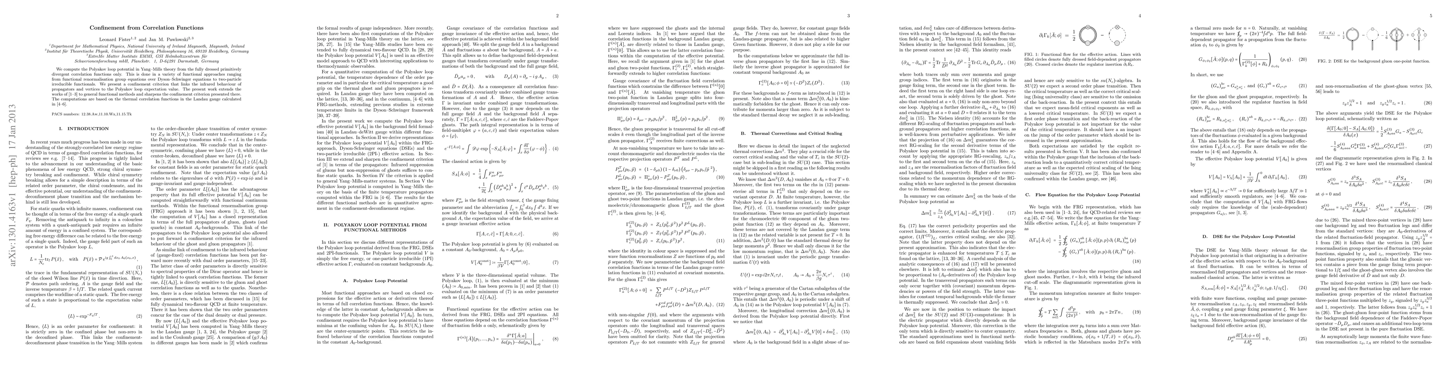 We compute the Polyakov loop potential in Yang--Mills theory from the fully dressed primitively divergent correlation functions only. This is done in a variety of functional approaches ranging from functional renormalisation group equations over Dyson--Schwinger equations to two-particle irreducible functionals. We present a confinement criterion that links the infrared behaviour of propagators and vertices to the Polyakov loop expectation value. The present work extends the works of [1-3] to general functional methods and sharpens the confinement criterion presented there. The computations are based on the thermal correlation functions in the Landau gauge calculated in [4-6].