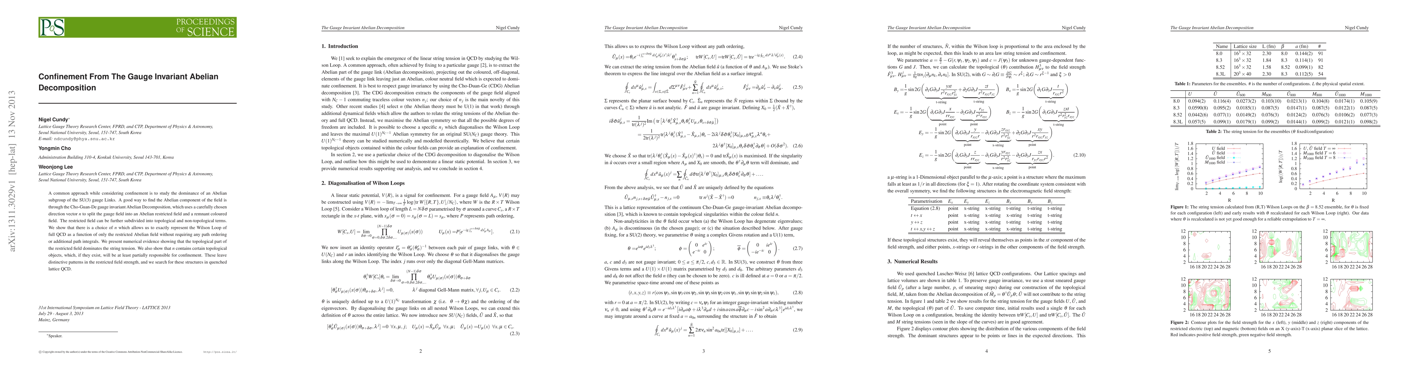 This paper explores confinement in QCD using the Cho-Guan-De gauge invariant Abelian decomposition, demonstrating that the topological part of the Abelian restricted field dominates the string tension. Numerical evidence suggests that certain topological objects in the direction vector $n$ play a role in confinement.