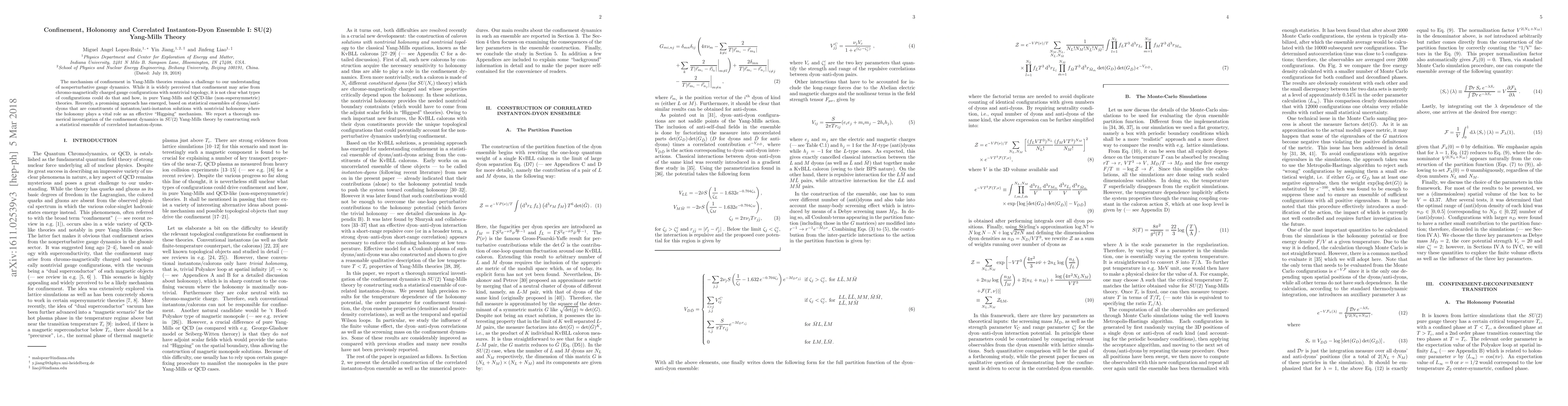 This paper investigates the mechanism of confinement in SU(2) Yang-Mills theory through a statistical ensemble of correlated instanton-dyon configurations. The study suggests that holonomy in nontrivial topological configurations acts as an effective mechanism for confinement.