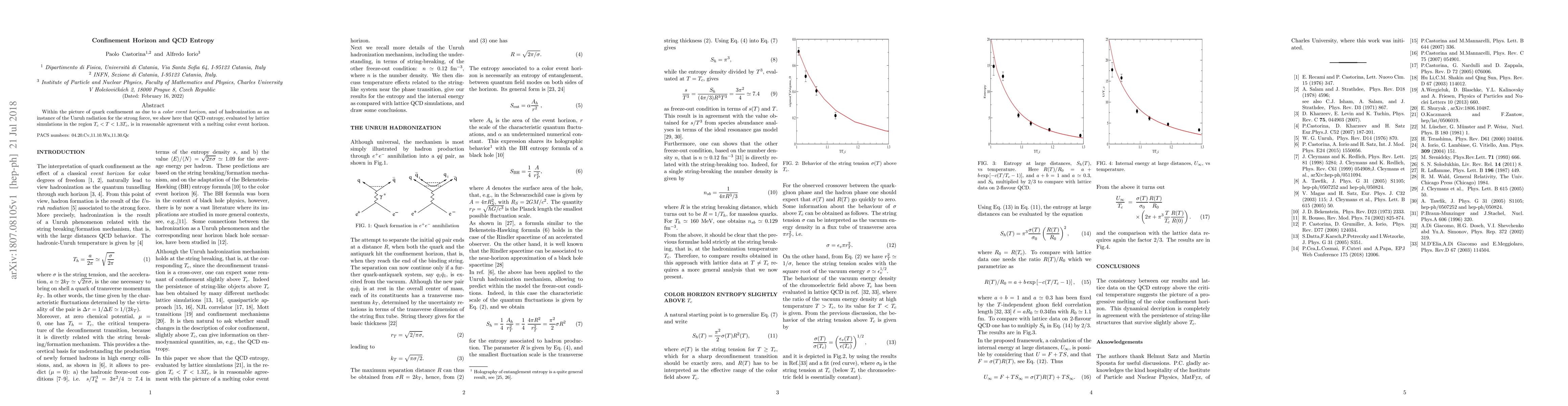 This paper explores the connection between quark confinement and entropy in QCD, finding reasonable agreement between lattice simulations and a melting color event horizon within a specific temperature range.