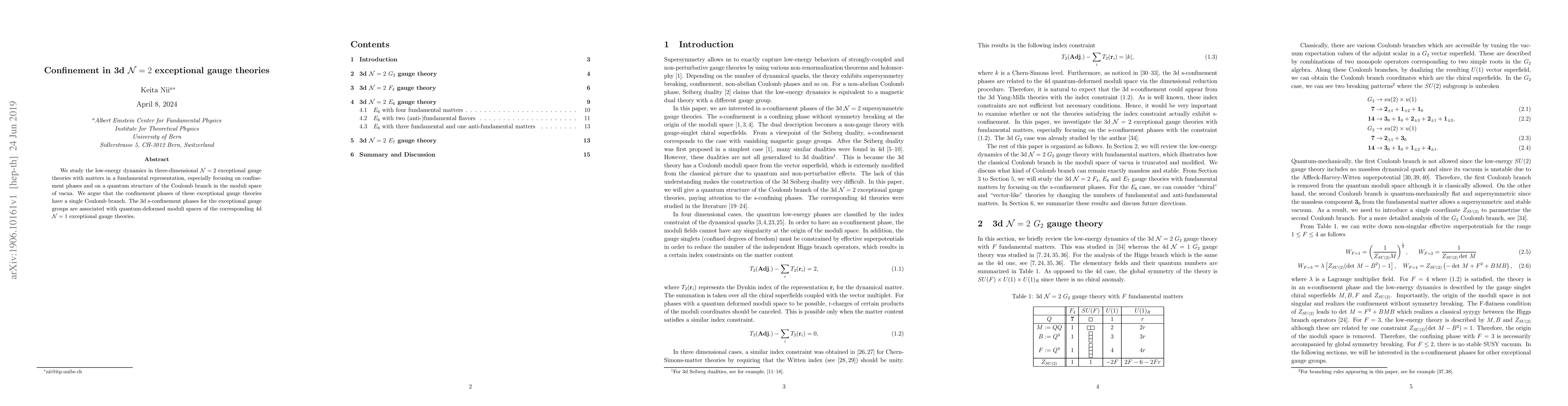 This paper investigates the low-energy dynamics of 3d $\mathcal{N}=2$ exceptional gauge theories, focusing on confinement phases and the structure of the Coulomb branch. It argues that these theories exhibit a single Coulomb branch in their confinement phases, linking them to quantum-deformed moduli spaces of corresponding 4d $\mathcal{N}=1$ exceptional gauge theories.