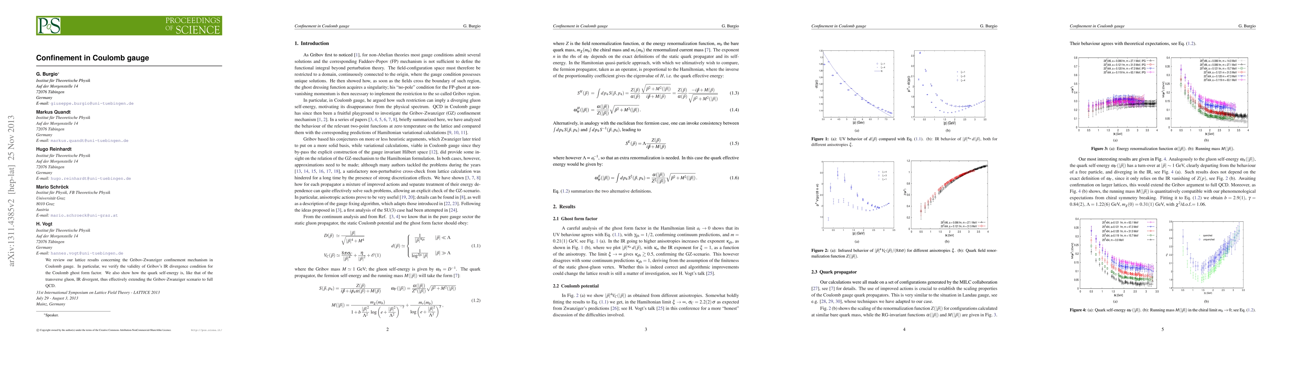 This paper reviews lattice results on the Gribov-Zwanziger confinement mechanism in Coulomb gauge, confirming Gribov's IR divergence condition and demonstrating IR divergence in quark self-energy, extending the Gribov-Zwanziger scenario to full QCD.