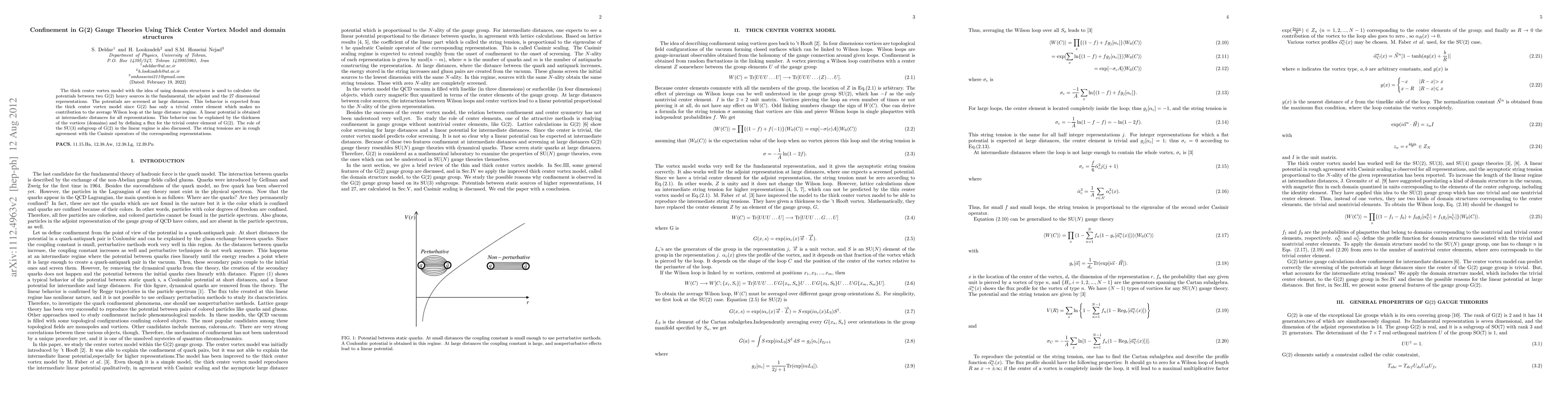 The thick center vortex model with the idea of using domain structures is used to calculate the potentials between two G(2) heavy sources in the fundamental, the adjoint and the 27 dimensional representations. The potentials are screened at large distances. This behavior is expected from the thick center vortex model since G(2) has only a trivial center element which makes no contribution to the average Wilson loop at the large distance regime. A linear potential is obtained at intermediate distances for all representations. This behavior can be explained by the thickness of the vortices (domains) and by defining a flux for the trivial center element of G(2). The role of the SU(3) subgroup of G(2) in the linear regime is also discussed. The string tensions are in rough agreement with the Casimir operators of the corresponding representations.