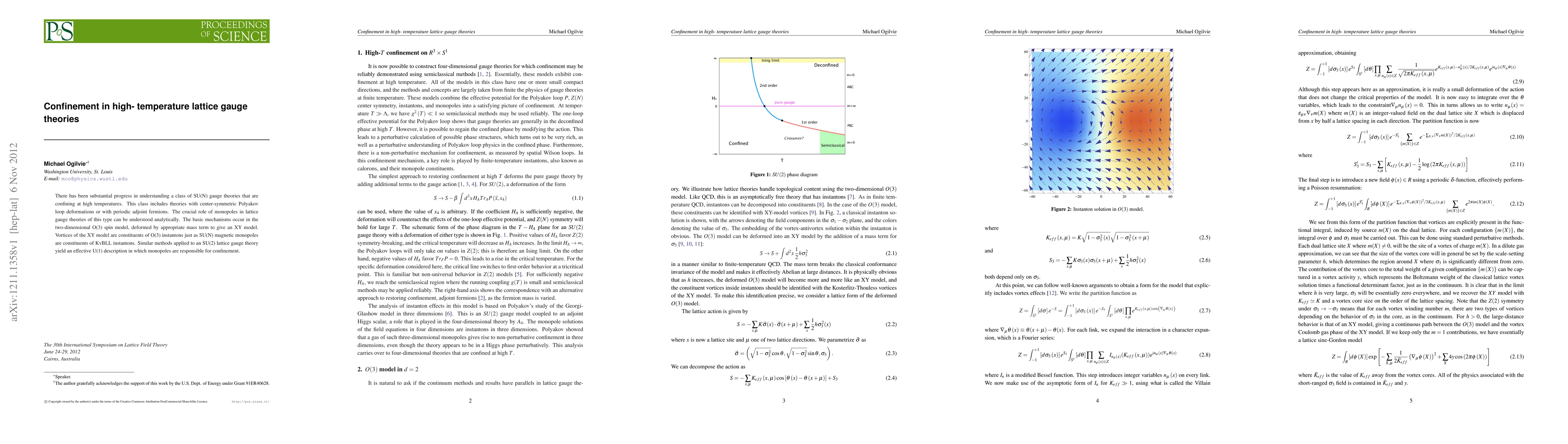 This research advances understanding of high-temperature confining SU(N) gauge theories, highlighting the role of monopoles and vortices in these systems, analogous to KvBLL instantons in SU(N) and O(3) instantons in the XY model. Effective U(1) descriptions reveal monopoles' critical role in confinement.