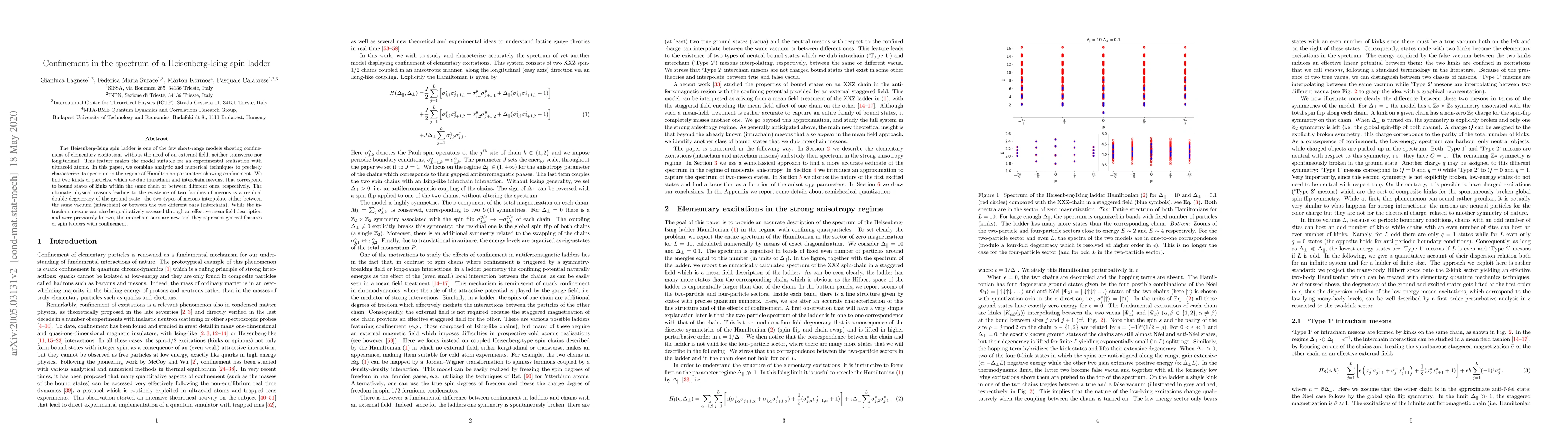 Researchers discover two types of mesons in a Heisenberg-Ising spin ladder model, which correspond to bound states of kinks within the same chain or between different ones, and provide insight into confinement without external fields.