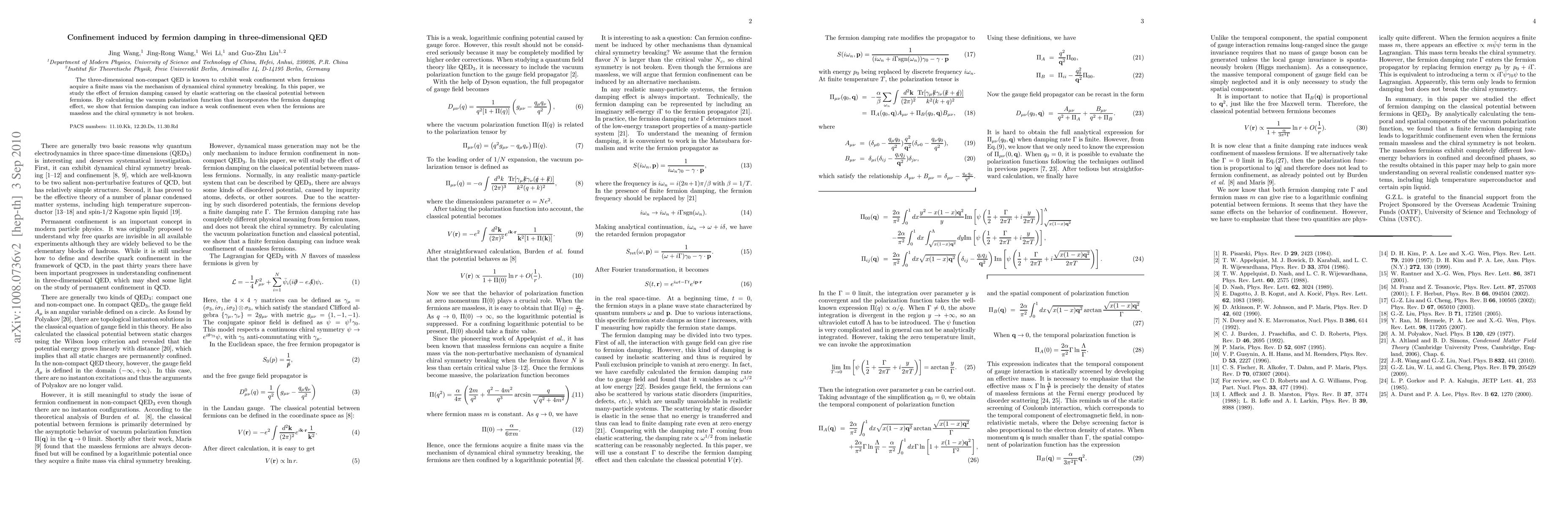 This paper investigates how fermion damping through elastic scattering can induce weak confinement in three-dimensional QED, demonstrating that even massless fermions can experience confinement when the vacuum polarization function accounts for the damping effect.