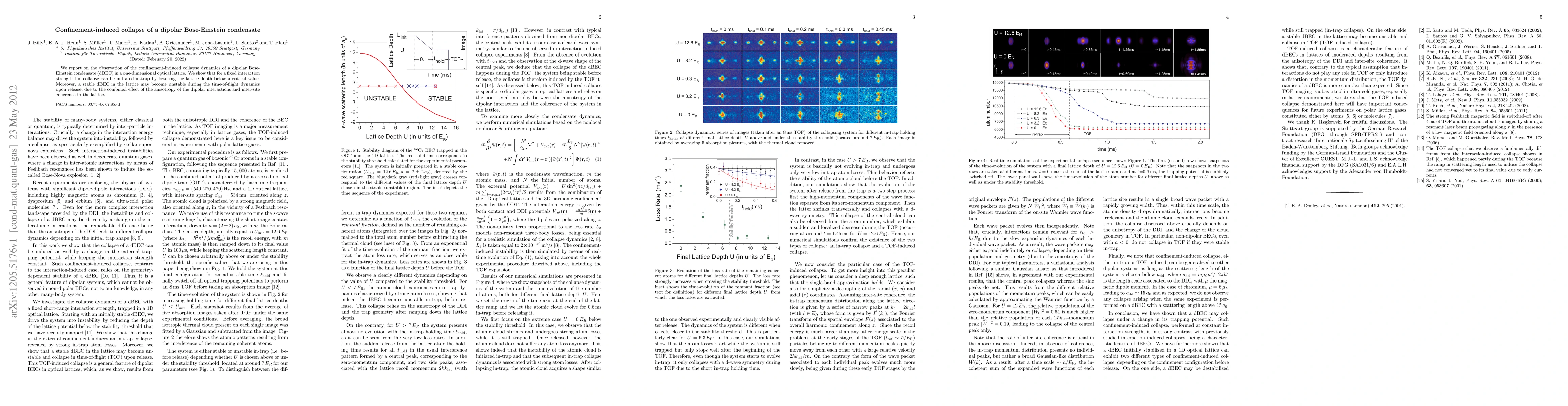 This paper observes the collapse dynamics of a dipolar Bose-Einstein condensate in a one-dimensional optical lattice, showing that lowering the lattice depth below a critical value can initiate collapse. The study also reveals that stable condensates may become unstable during time-of-flight due to the interplay of dipolar interactions and inter-site coherence.
