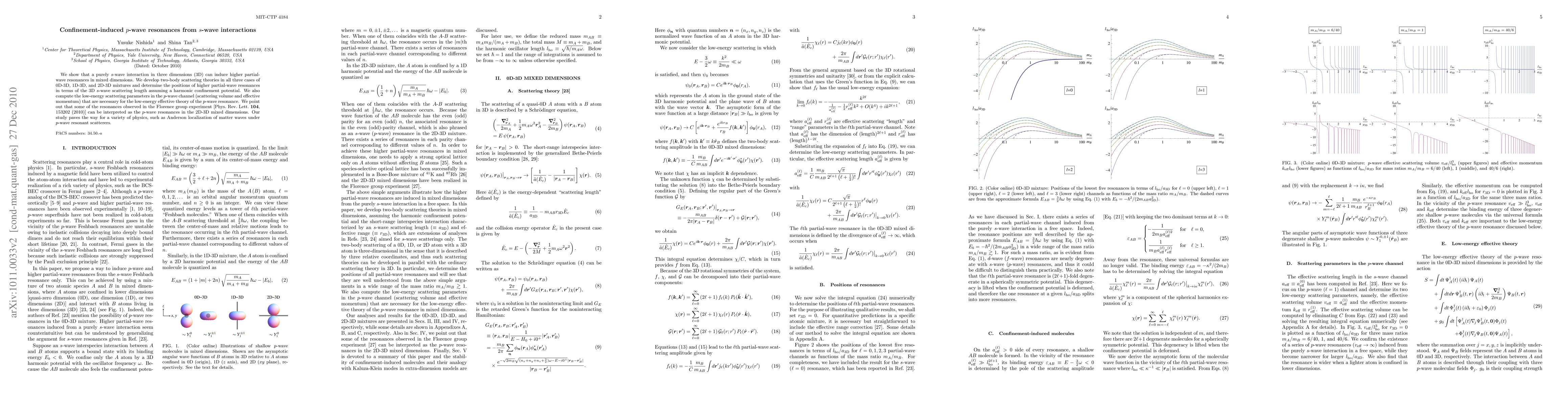 This paper explores how s-wave interactions in three dimensions can induce p-wave resonances in mixed-dimensional systems, developing scattering theories for 0D-3D, 1D-3D, and 2D-3D mixtures. It identifies p-wave resonances and computes relevant scattering parameters, linking experimental observations to theoretical predictions.