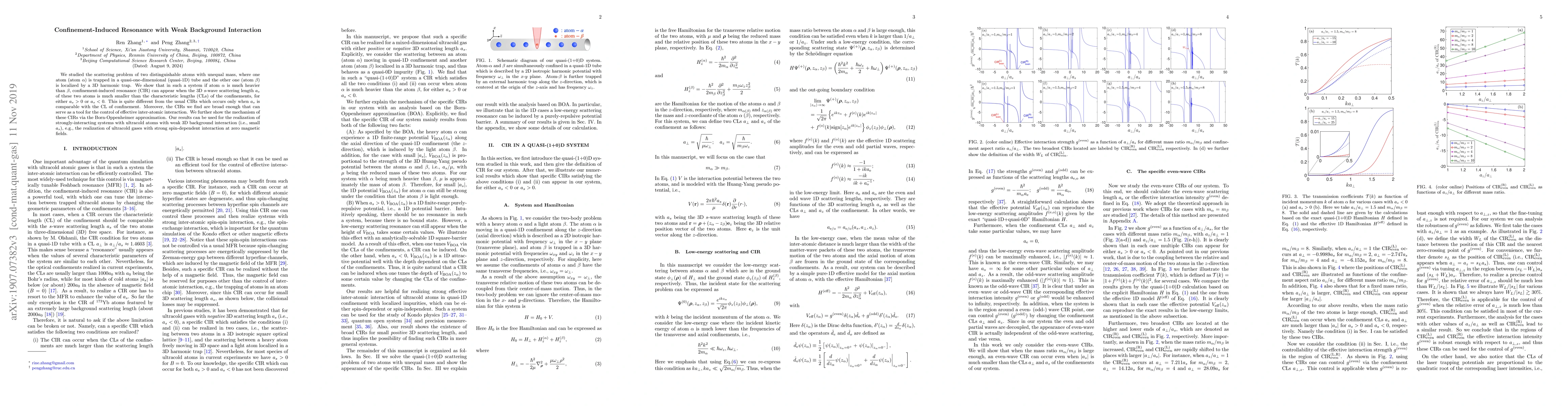 We studied the scattering problem of two distinguishable atoms with unequal mass, where one atom (atom $\alpha$) is trapped in a quasi-one-dimensional (quasi-1D) tube and the other one (atom $\beta$) is localized by a 3D harmonic trap. We show that in such a system if atom $\alpha$ is much heavier than $\beta$, confinement-induced resonance (CIR) can appear when the 3D $s$-wave scattering length $a_s$ of these two atoms is much smaller than the characteristic lengths (CLs) of the confinements, for either $a_s>0$ or $a_s<0$. This is quite different from the usual CIRs which occurs only when $a_s$ is comparable with the CL of confinement. Moreover, the CIRs we find are broad enough that can serve as a tool for the control of effective inter-atomic interaction. We further show the mechanism of these CIRs via the Born-Oppenheimer approximation. Our results can be used for the realization of strongly-interacting systems with ultracold atoms with weak 3D background interaction (i.e., small $a_s$), e.g., the realization of ultracold gases with strong spin-dependent interaction at zero magnetic fields.