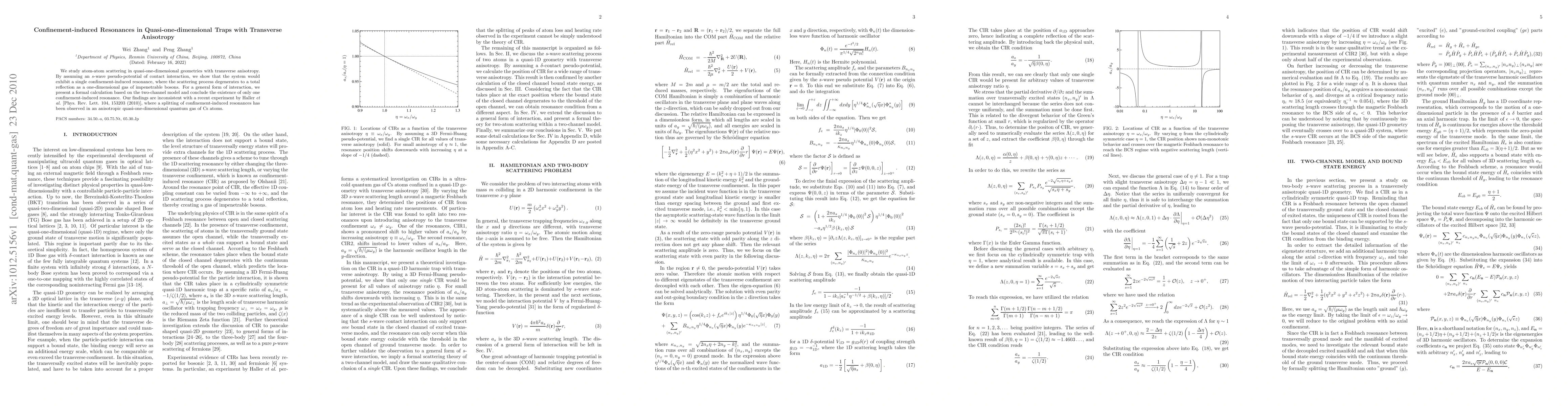This paper investigates atom-atom scattering in quasi-one-dimensional traps with transverse anisotropy, predicting a single confinement-induced resonance and a total reflection for s-wave interactions. It contrasts these theoretical findings with experimental results showing resonance splitting, suggesting potential discrepancies in understanding anisotropic quantum gases.