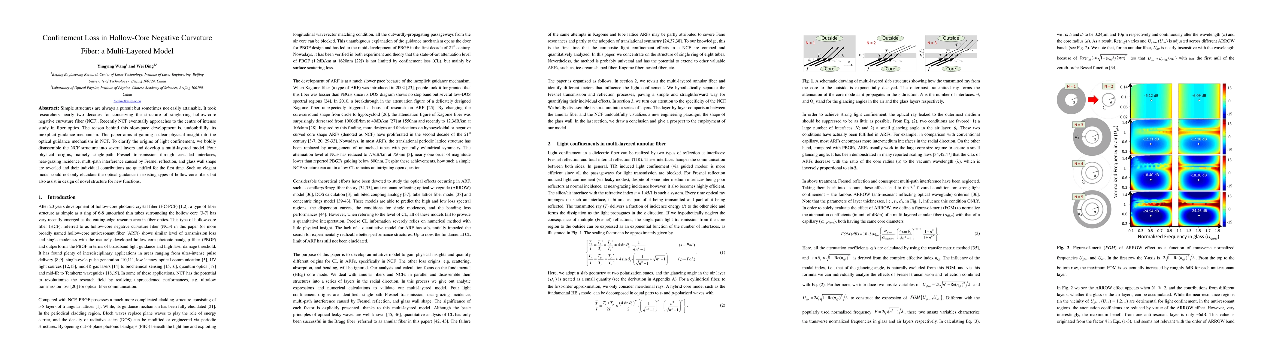 This paper develops a multi-layered model to clarify the optical guidance mechanism in hollow-core negative curvature fiber (NCF), identifying four physical origins of light confinement: Fresnel transmission, near-grazing incidence, multi-path interference, and glass wall shape. This model provides insights into existing NCFs and aids in designing new fiber structures.