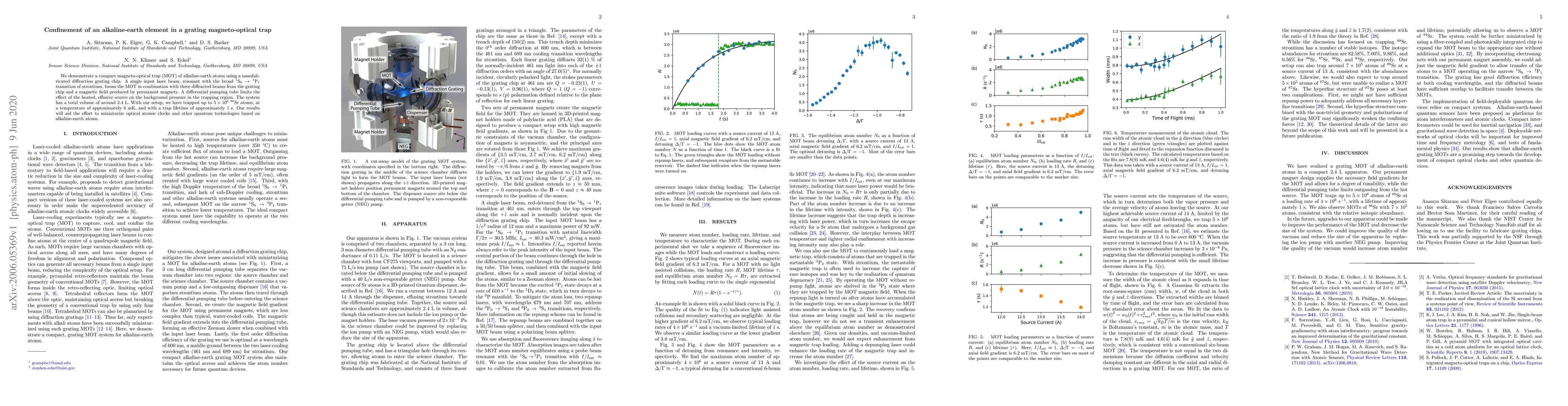 This paper describes a compact magneto-optical trap using a nanofabricated diffraction grating chip to confine strontium atoms, achieving trapping of up to $5 \times 10^6$ $^{88}$Sr atoms at a temperature of $6$ mK. The setup aims to facilitate the miniaturization of optical atomic clocks and quantum technologies.