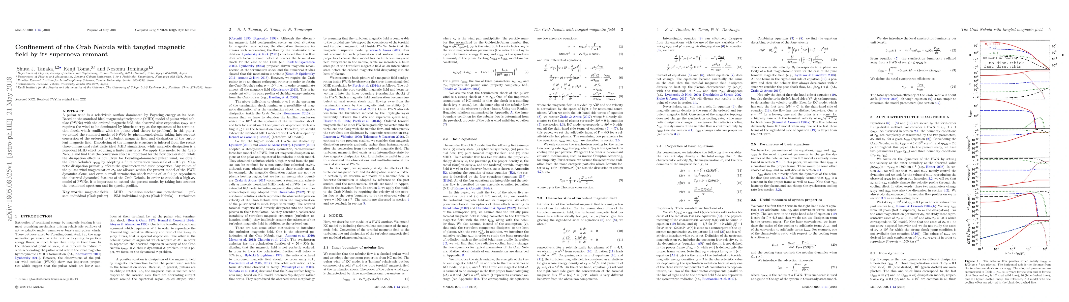 Researchers extended a model of pulsar wind nebulae to include conversion of ordered magnetic field to turbulent field, resolving the sigma problem in ideal magnetohydrodynamics, and found that this process decelerates the flow, while magnetic dissipation affects synchrotron radiation properties.