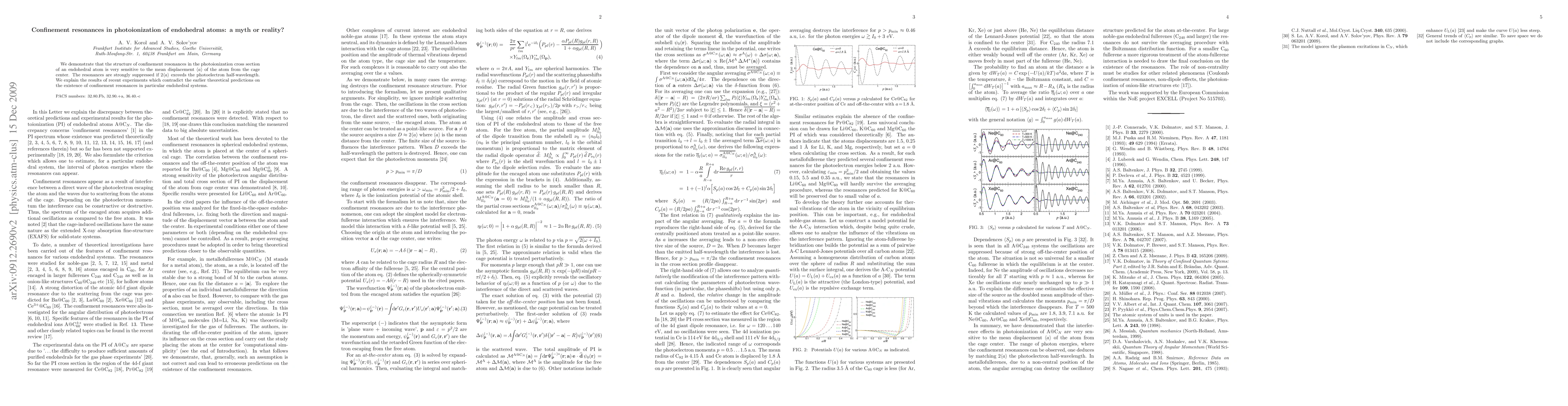 We demonstrate that the structure of confinement resonances in the photoionization cross section of an endohedral atom is very sensitive to the mean displacement of the atom from the cage center. The resonances are strongly suppressed if 2 exceeds the photoelectron half-wavelength. We explain the results of recent experiments which contradict the earlier theoretical predictions on the existence of confinement resonances in particular endohedral systems.